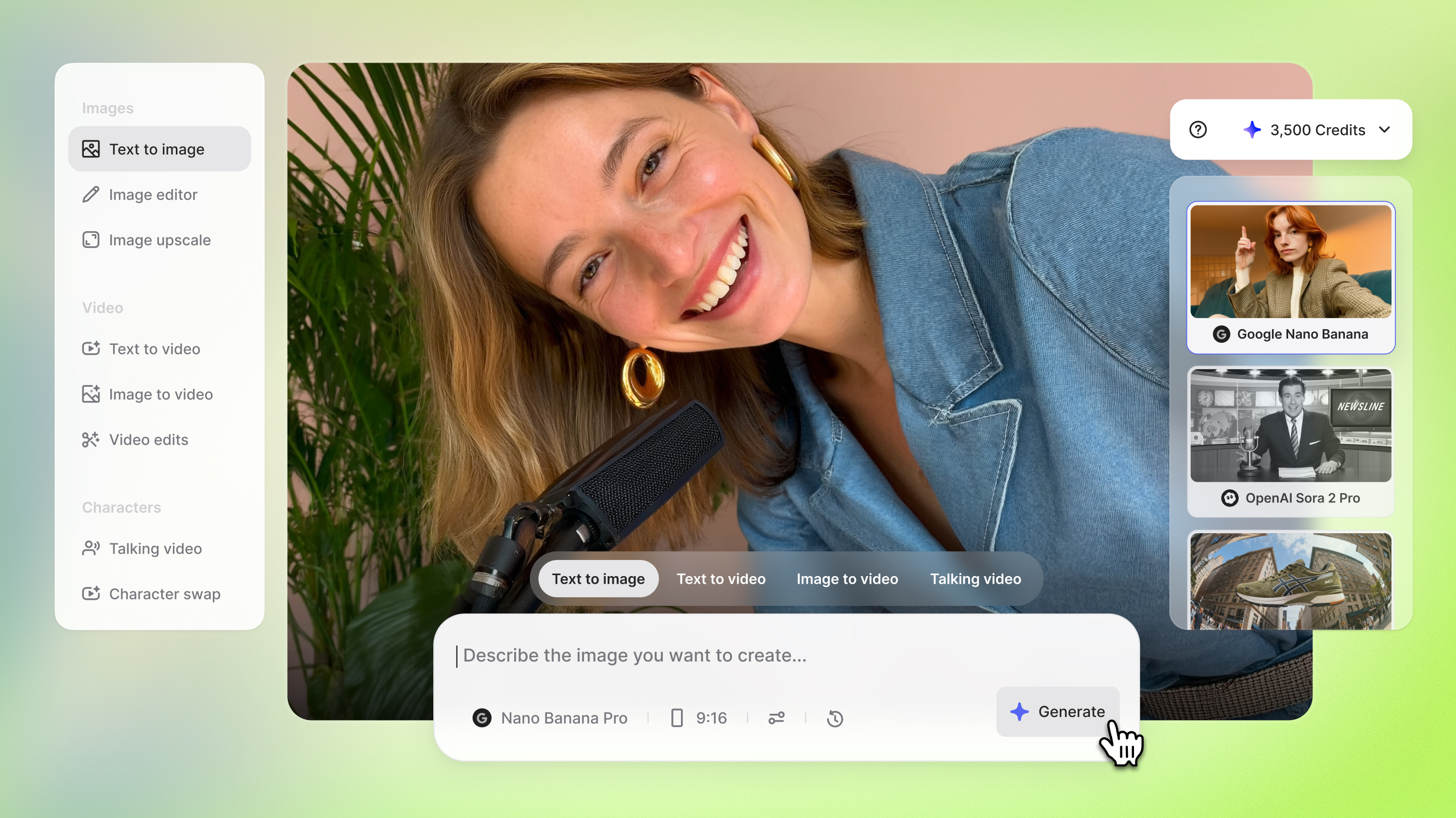 • Create custom visuals, animations, and motion graphics from text prompts