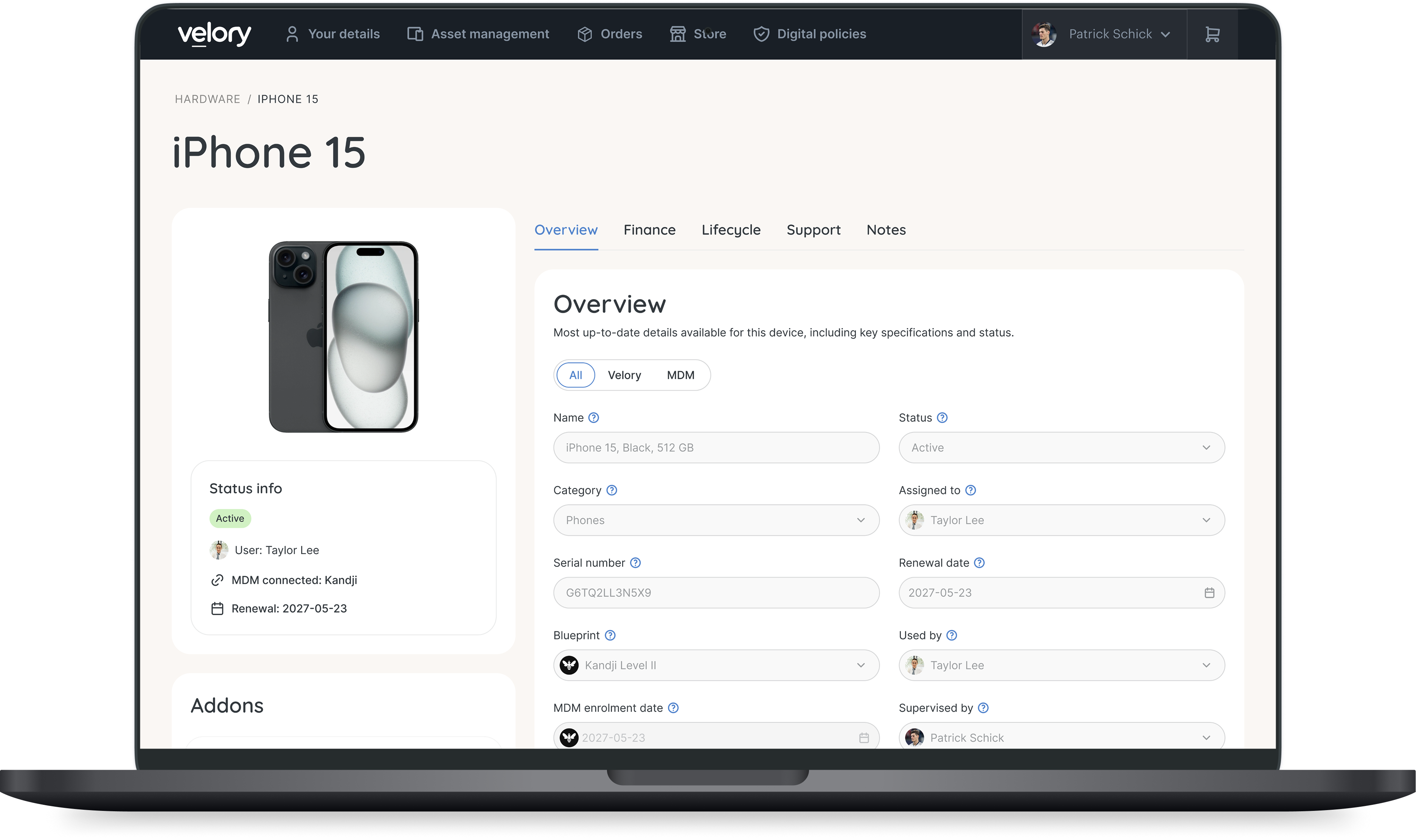 Velory has responsive and committed support. I feel like we have good control over orders and devices. Review collected by and hosted on G2.com.