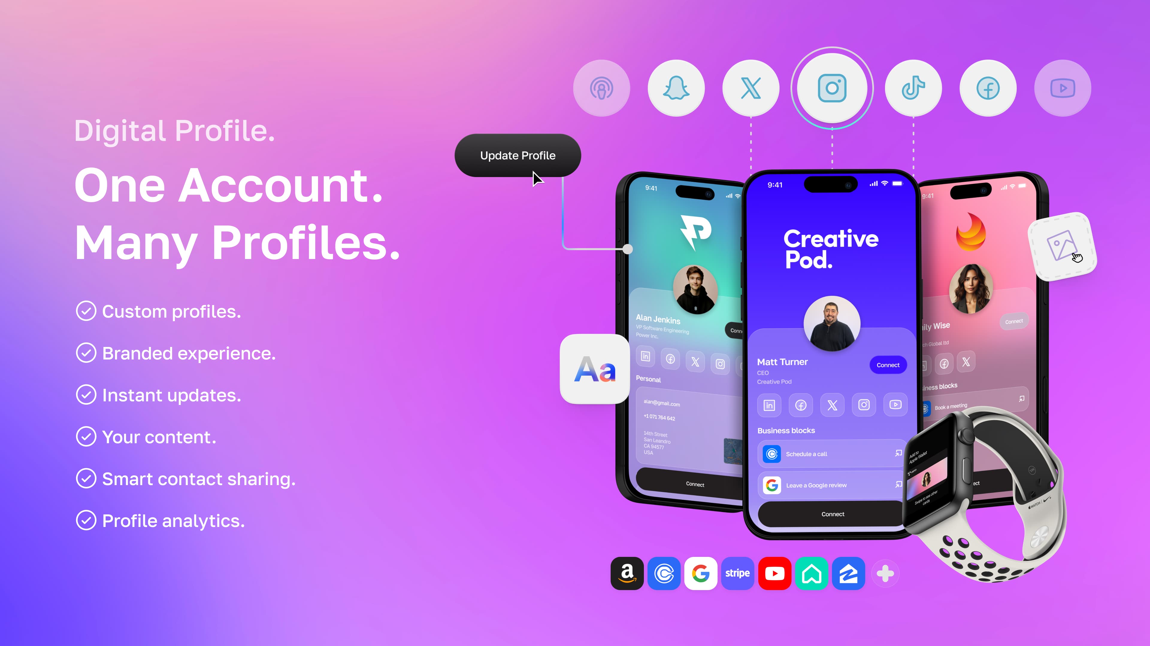 Create and manage multiple profiles for different roles, industries, or occasions. Whether you’re representing your business, attending a networking event, or simply connecting socially. With VennCard, you can switch effortlessly between profiles and ensure you’re always sharing the most relevant...