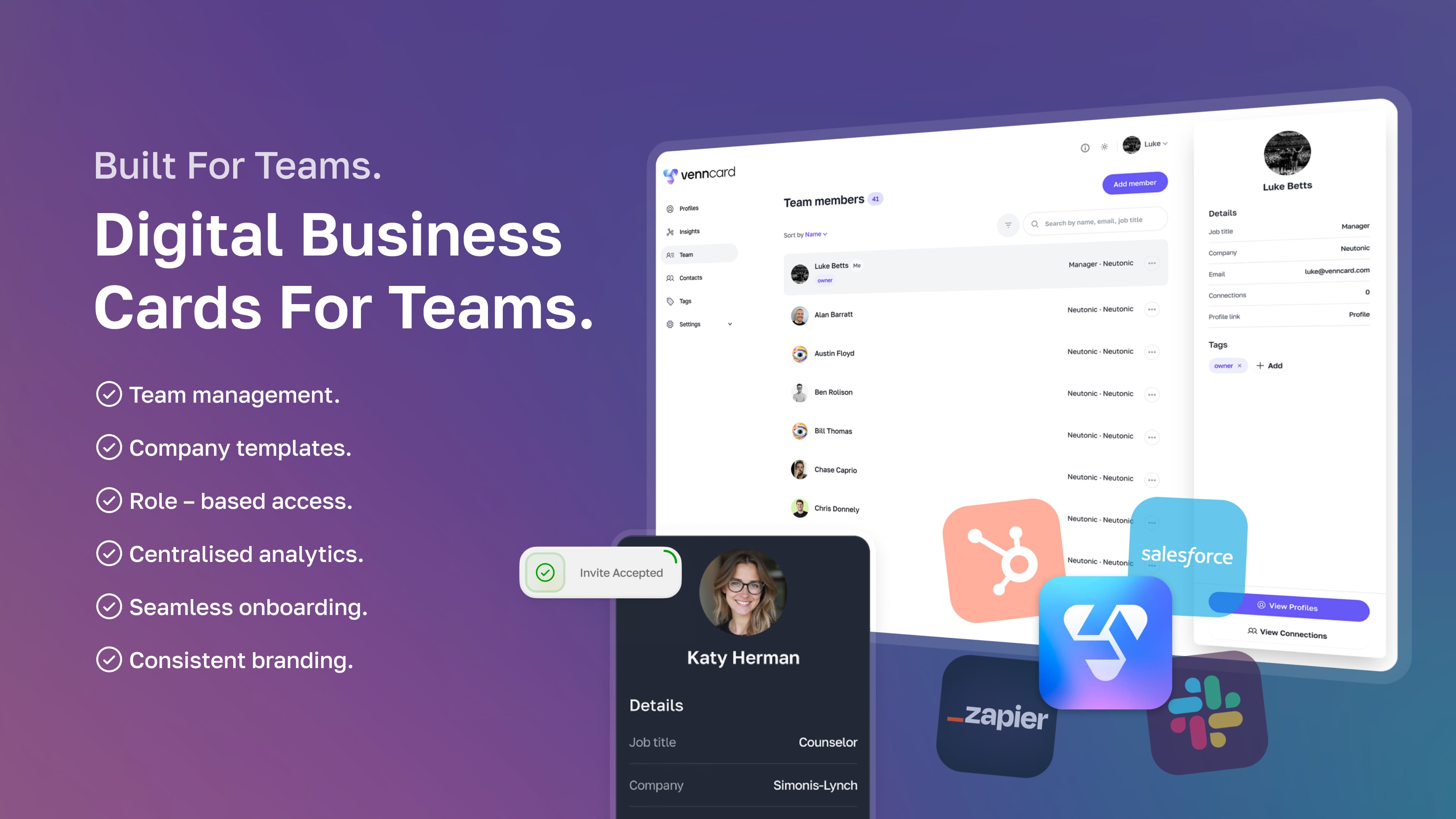 Whether you’re meeting new clients, growing your personal brand, or networking at events, VennCard helps you share effortlessly and stay top of mind. Instantly capture leads, follow up with ease, and keep every interaction organised, from events and meetings to sales conversations and beyond. Sea...