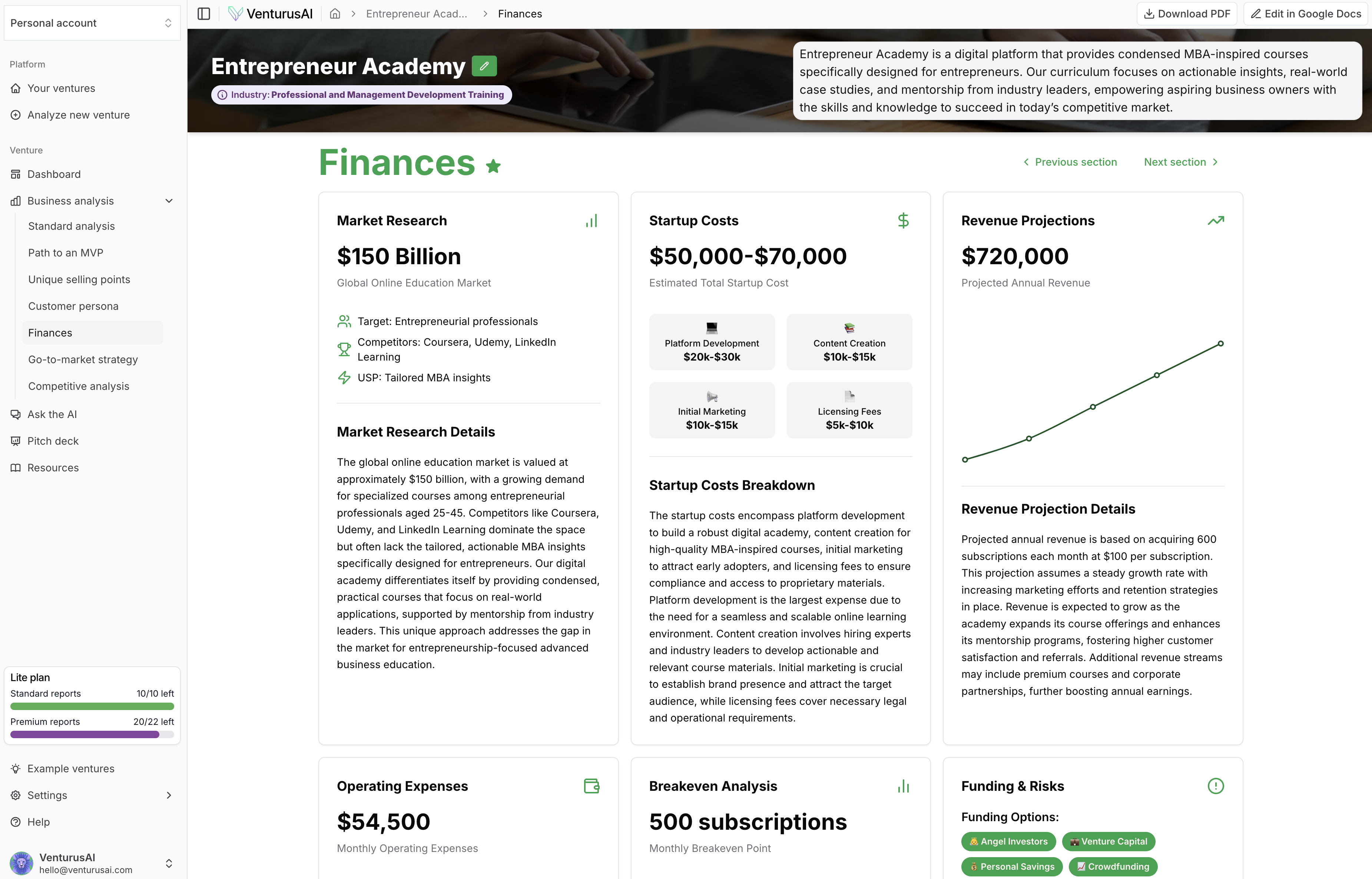 - Comprehensive Business Analysis: Generates detailed reports including SWOT, PESTEL, and Porter's Five Forces assessments to evaluate business viability.