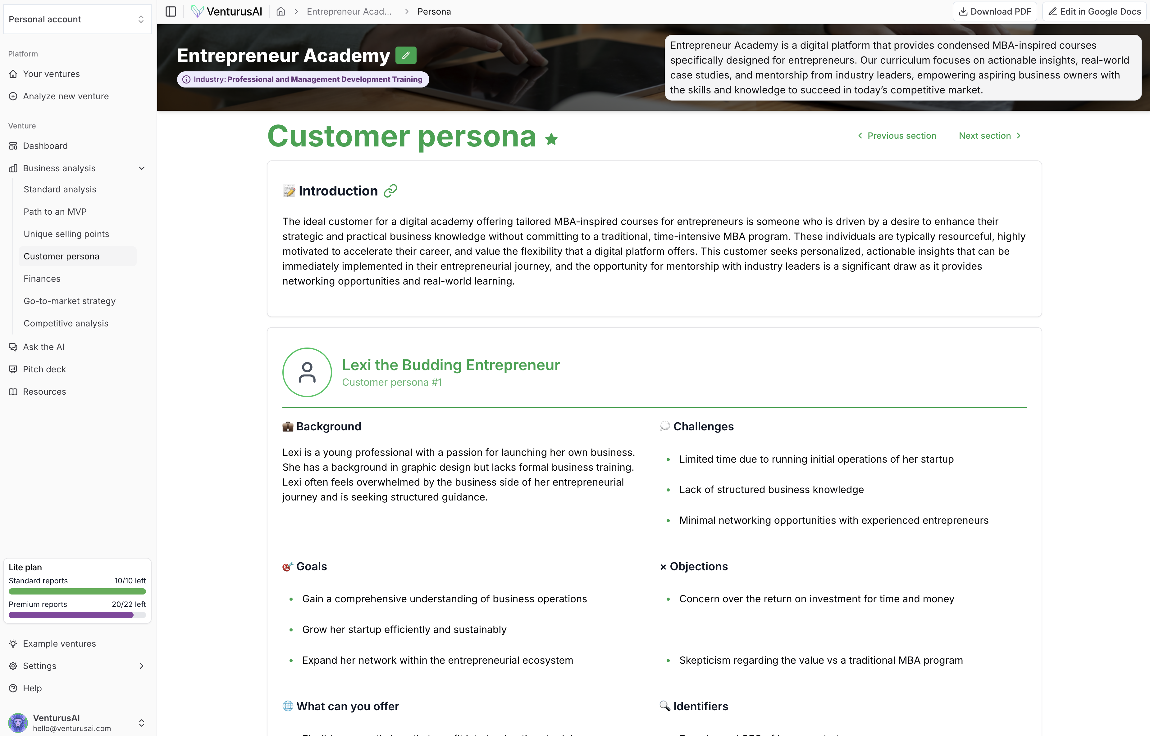 VenturusAI empowers users to validate and refine their business concepts by providing instant, in-depth analyses and strategic recommendations. This enables entrepreneurs to make informed decisions, identify target audiences, develop effective marketing strategies, and plan financials accurately, ultimately increasing the likelihood of business success.
