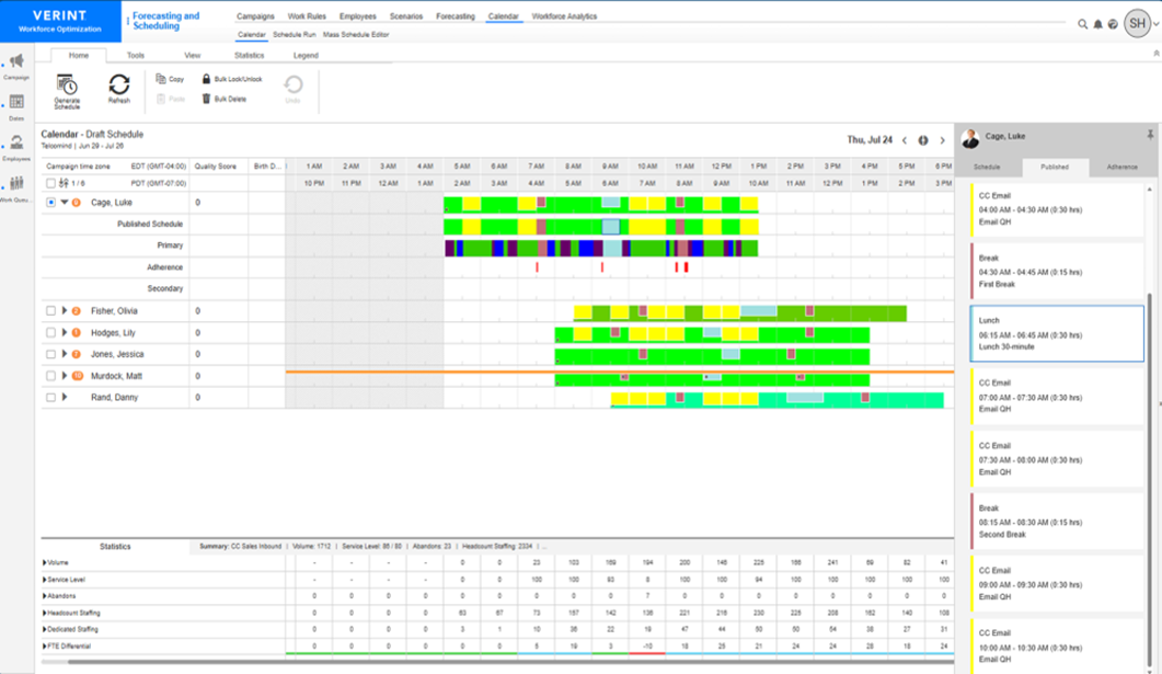 The scheduling is super efficient. It builds our shifts based on demand, availability, and skills, and if something changes during the day, the system adjusts. It also tracks schedule adherence in real time, which keeps everyone accountable without needing constant manual check-ins. Review collected by and hosted on G2.com.