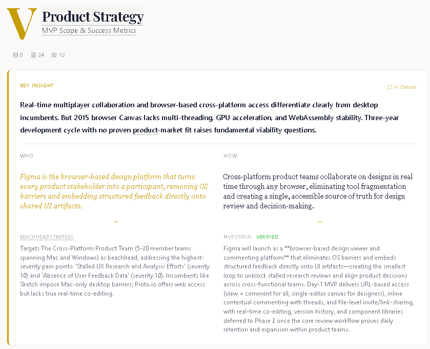 - Venture studios evaluating multiple concepts to determine which ideas merit further investment