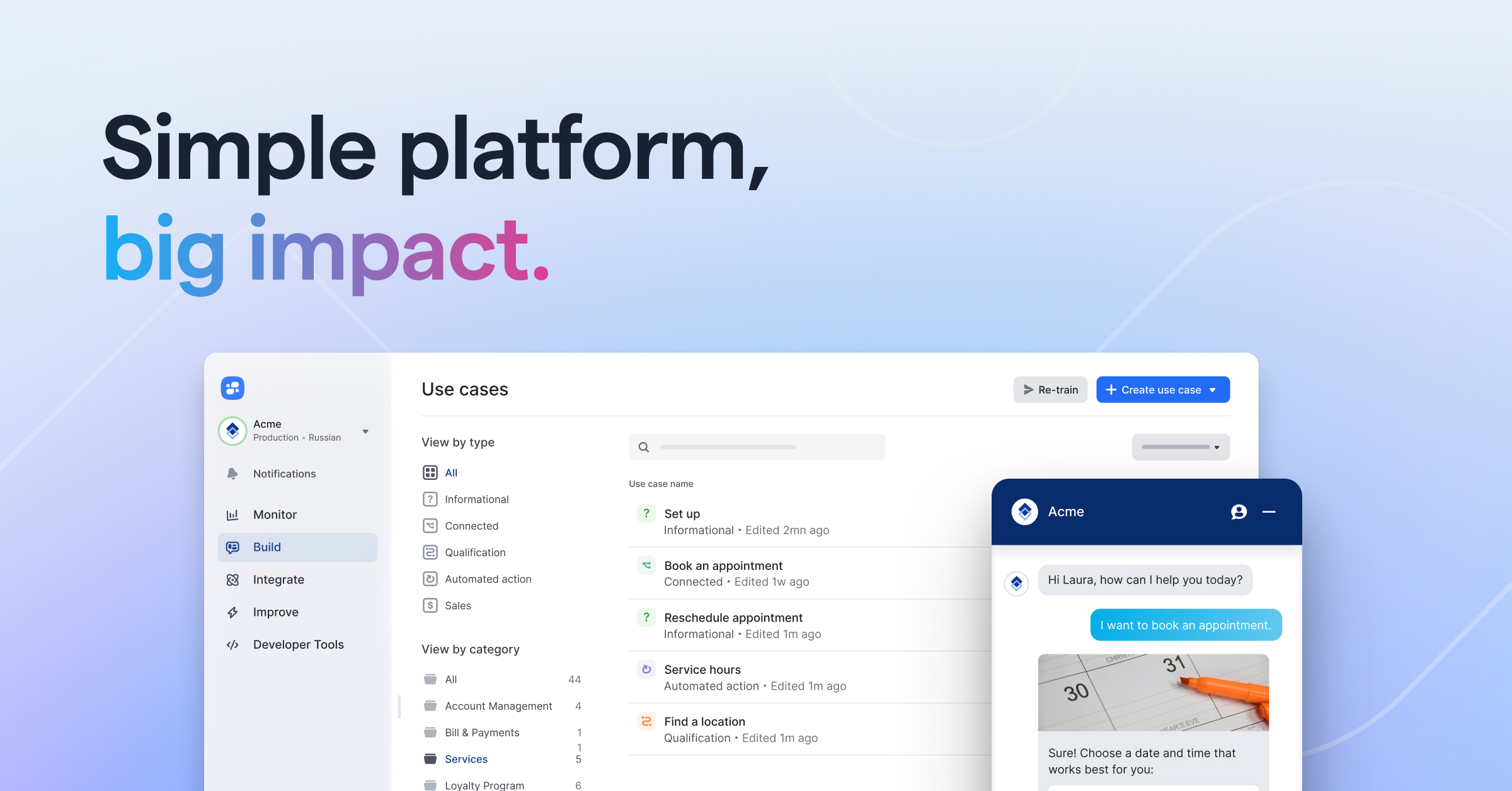 Altering or building use cases in the advanced flow builder requires assistance. However, our account manager was always able to assist in these cases, and Laiye has recently implemented a flow builder 2.0 that makes building use cases much more intuitive and accessible to any user.