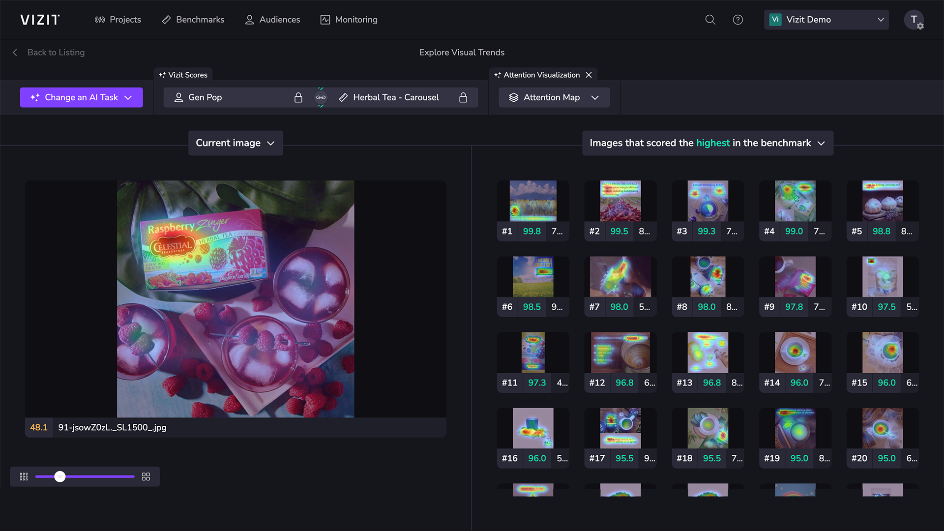 Vizit’s technology harnesses the organic interactions millions of consumers have with online commercial imagery to generate new AI-powered models of their visual preferences. These models, called Audience Lenses, give brands the ability to evaluate visual content and new concepts “through the eyes” of their target audiences, ensuring the images used to represent their products are effective at capturing their desired audience’s attention and are able to trigger conversion.