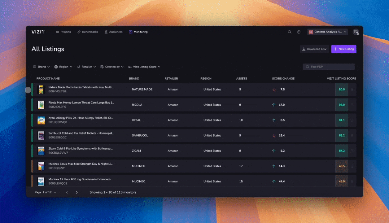 - Competitive Intelligence: Identify leading and lagging content within your category and monitor performance trends over time.