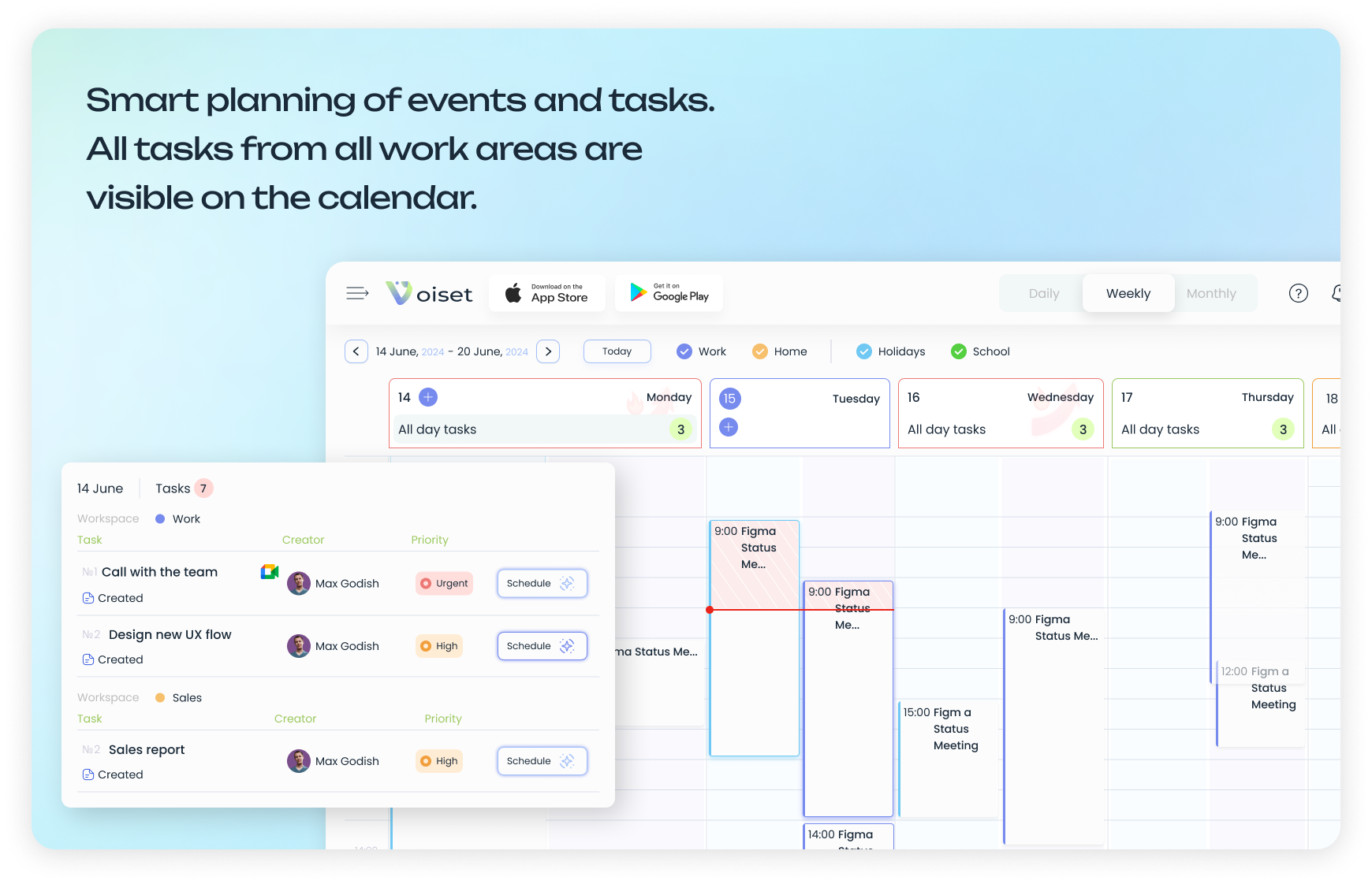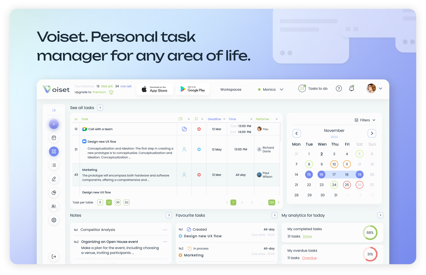 What truly makes Voiset stand out is its attention to work-life balance. It is not only about work tasks. Voiset helps you plan your personal goals, appointments, and time off in the same space where you manage your projects. The system is designed to reduce overload, clear your mind, and make space for what matters most in your life.