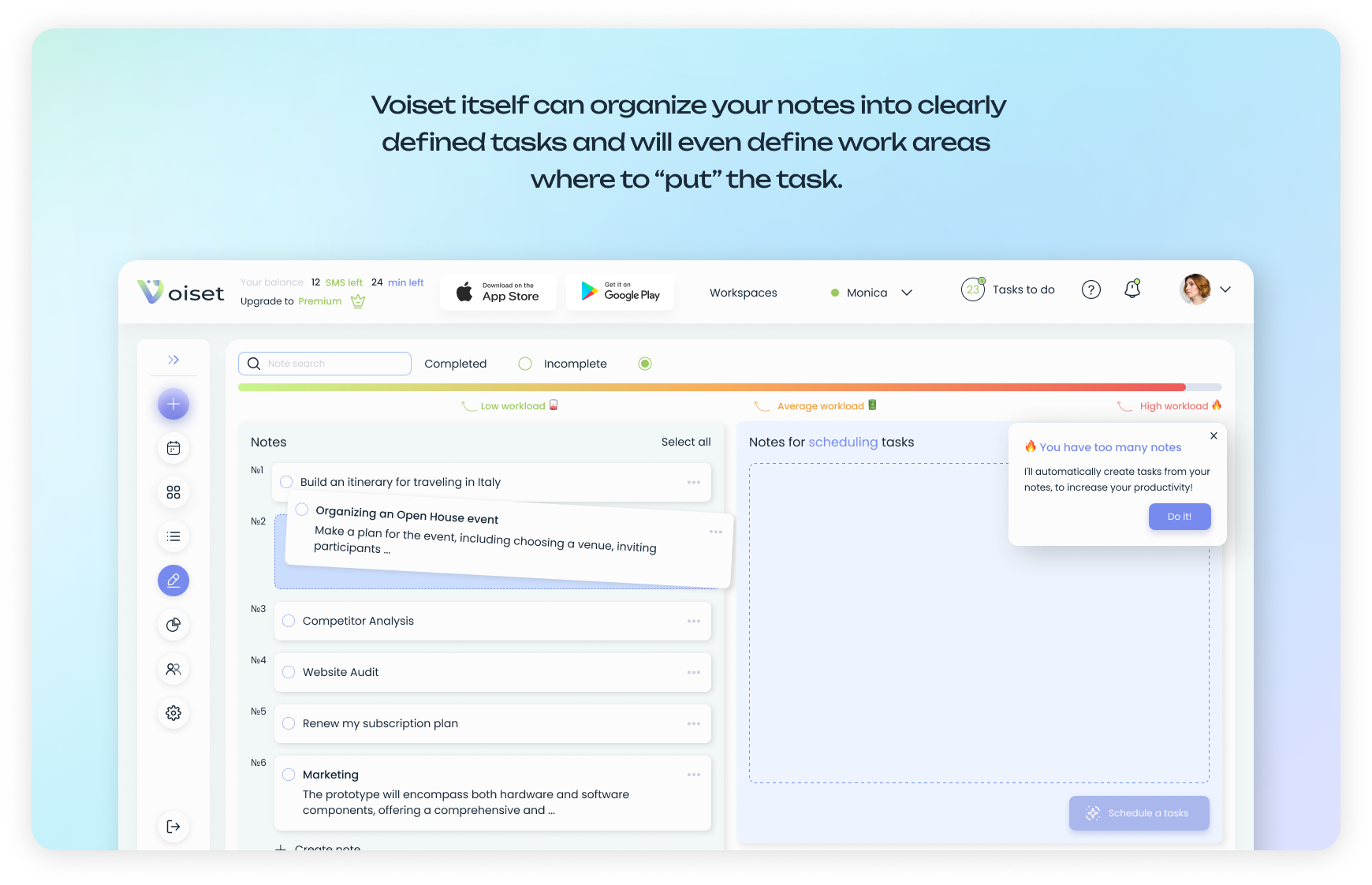 Creating tasks in Voiset is quick and intuitive. You can add a new task or note with just one click. The interface is clean and focused, allowing you to stay productive without distractions. If you are on the go, the mobile app gives you instant access to your tasks and plans. You can view your day or month, drag and drop tasks, and manage priorities anytime, anywhere.