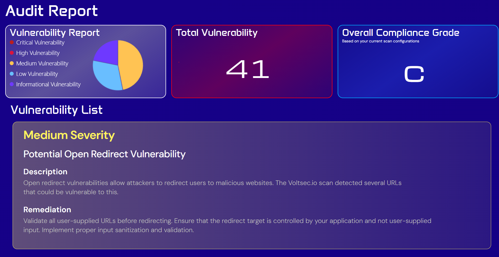- Detailed finding reports