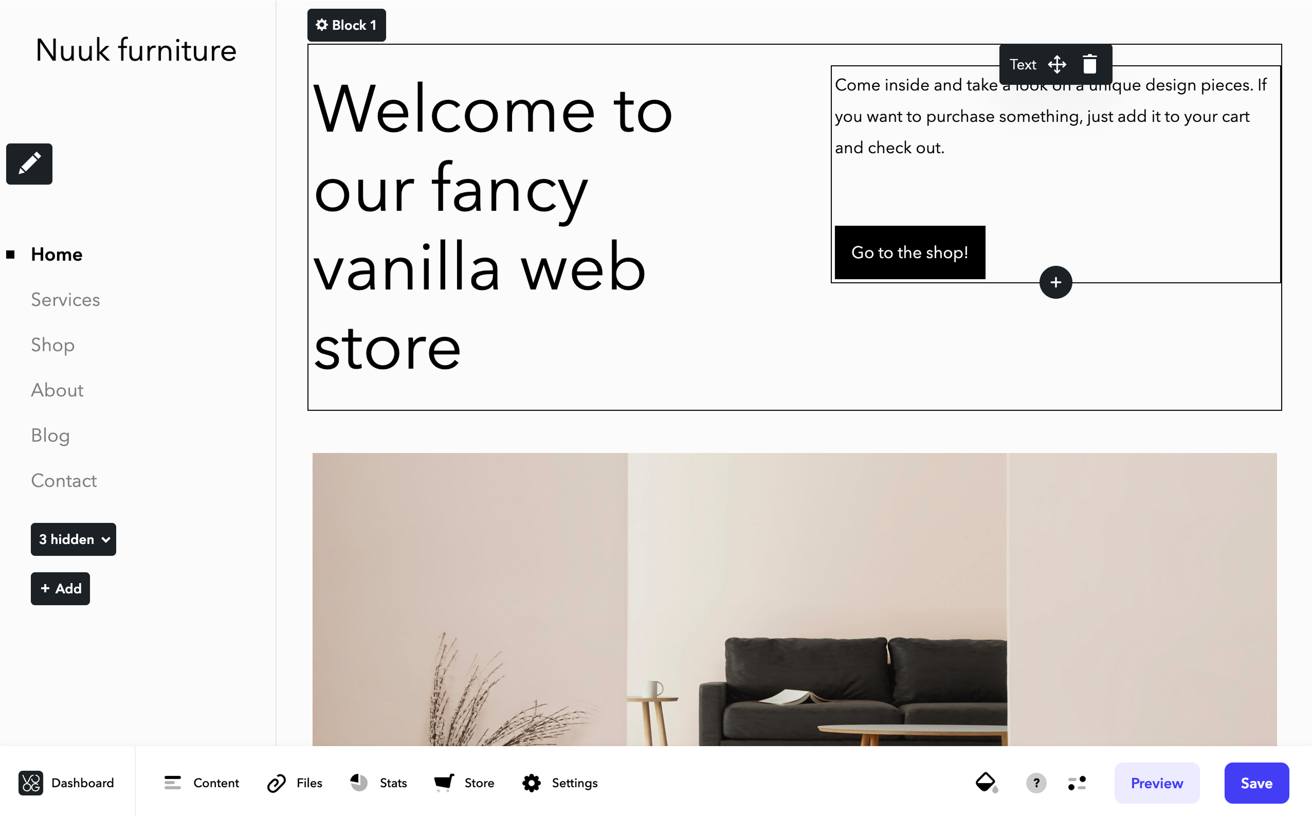 4. Developer tools: For more advanced customization, Voog offers HTML‑based templates (Liquid), CSS & JavaScript editing, a full API, webhooks, a database builder, and command‑line tools, making it highly extendable.