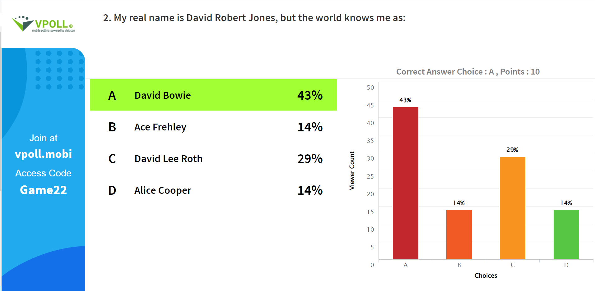 AhaSlides is an interactive presentation software for your class, meetings and events. We make it easy to add polls, live charts, fun quizzes, engaging Q&A sessions to your presentation. So you can be a real star on stage