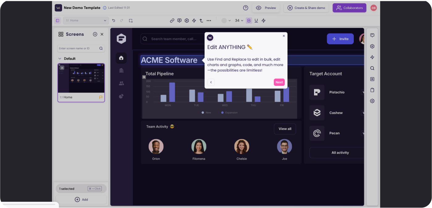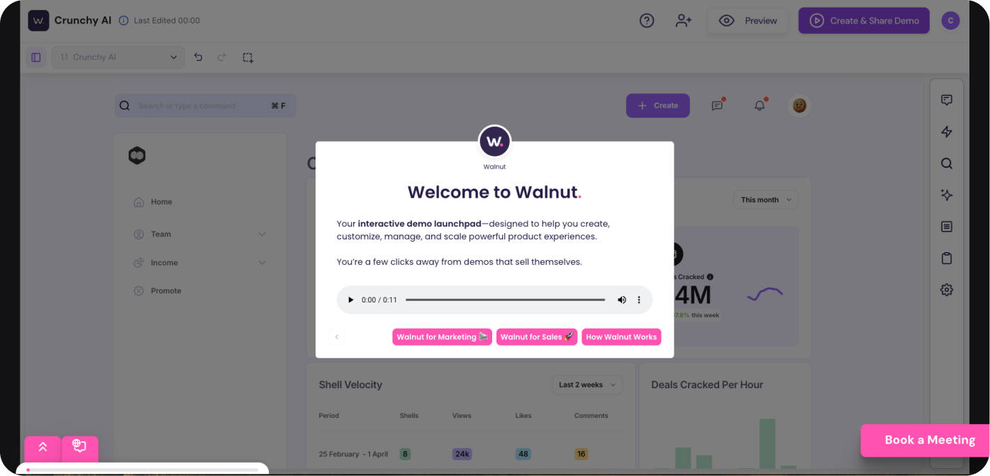 What I like best about Walnut is that it gives me complete control over my demos without relying on engineering. I can easily create personalized, no-code demos that align with each prospect’s use case, ensuring every session feels relevant and impactful. Plus, the analytics help me understand what resonates with prospects, so I can refine my story for future demos. Overall, Walnut lets me focus on selling value instead of managing demo environments Review collected by and hosted on G2.com.