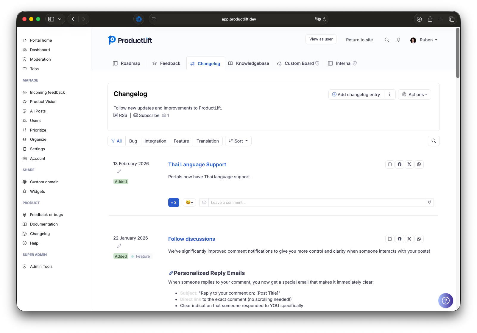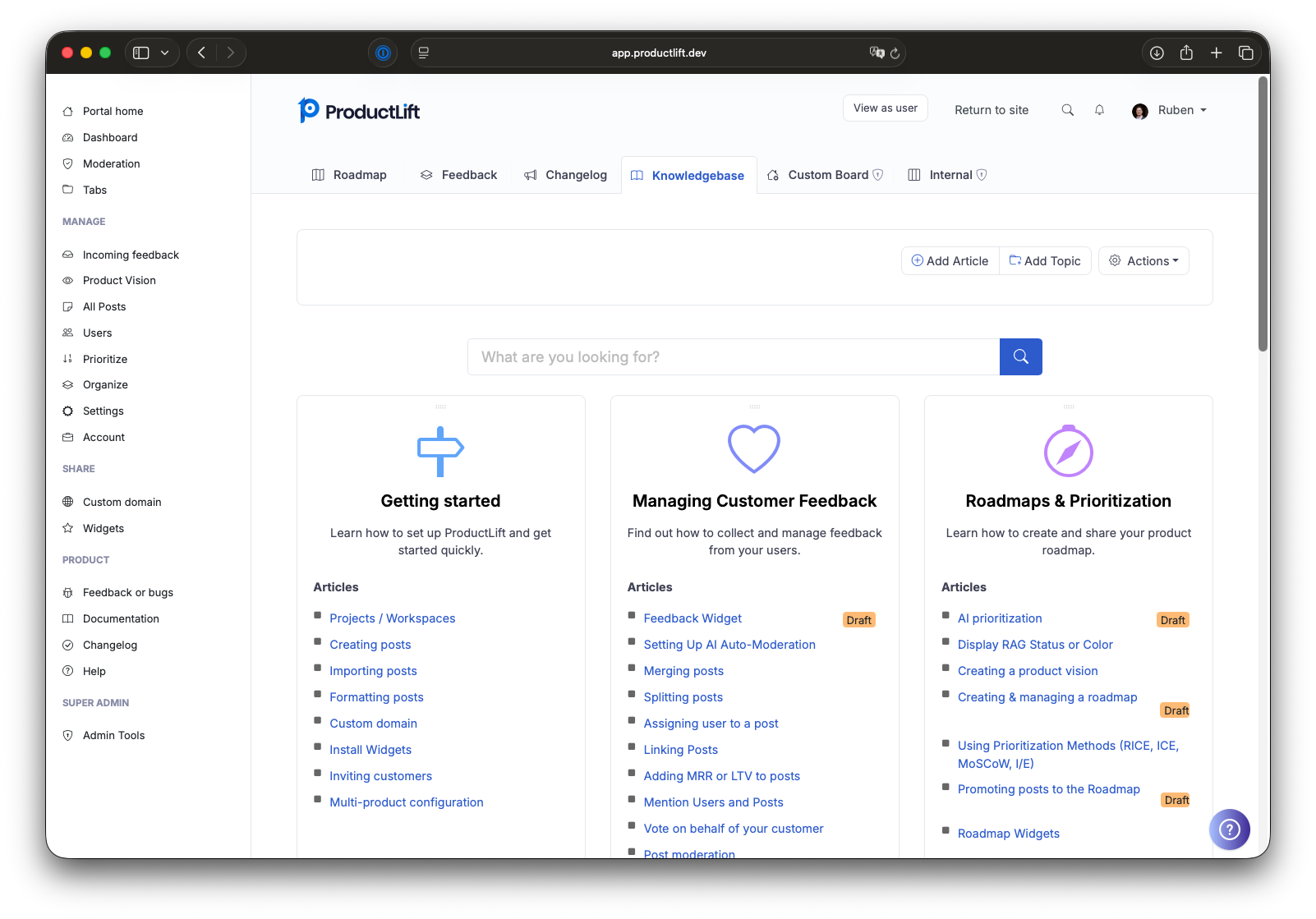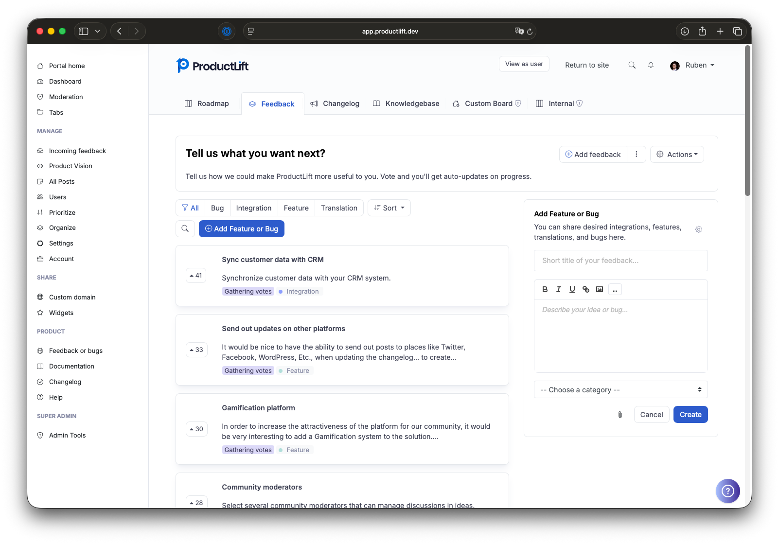 We compared various products similar to ProductLift and also explored other product combinations. However, in the end, we chose ProductLift because it offers us the convenience of a single platform, helps us manage feedback efficiently, and makes our users feel involved in the development of our membership. For us, this is a win-win situation. Review collected by and hosted on G2.com.