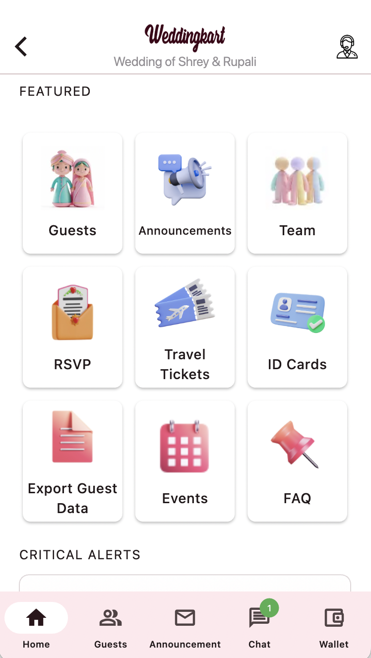 Weddingkart is purpose-built for the operational realities of an Indian wedding: multi-day, multi-event weddings of 100 to 2,000+ guests where the family WhatsApp group is the de facto coordination layer. Unlike generic event ticketing platforms or vendor marketplaces, Weddingkart sits at the layer between the guest list and WhatsApp, automating invitation waves, RSVP follow-ups, hospitality updates, and day-of logistics.