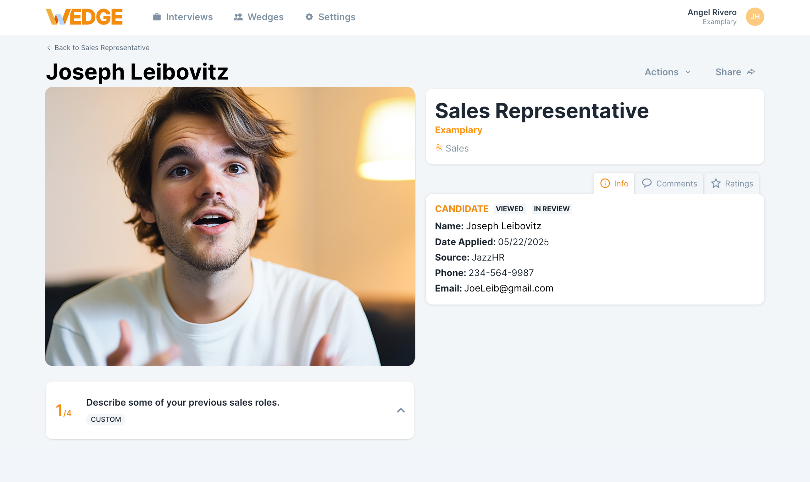 - ATS Integration: Wedge seamlessly integrates with your current ATS, reducing friction and streamlining the entire screening process.