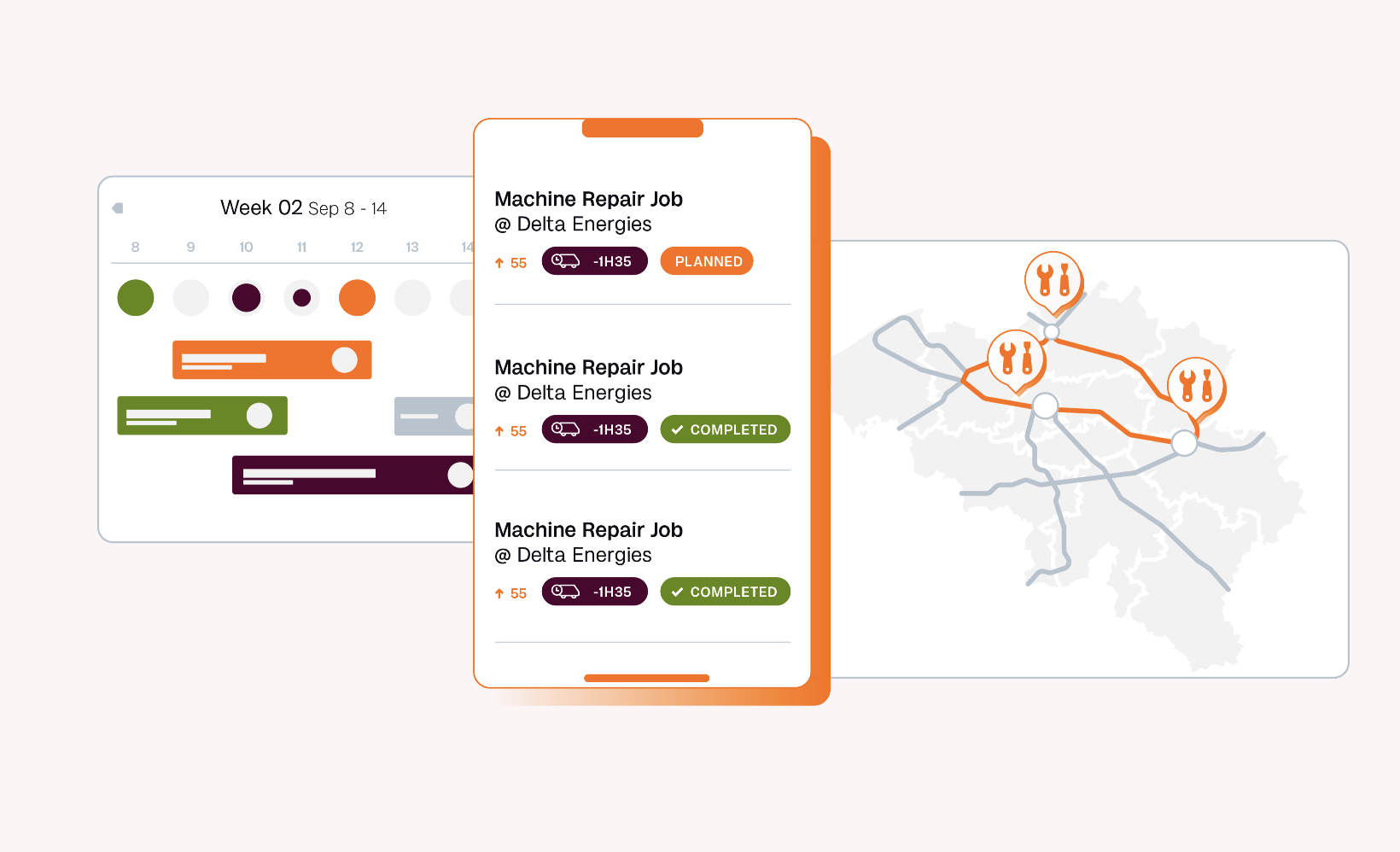 Master your planning in minutes, not hours! Get more out of your available capacity, follow-up in realtime without phone calls. Automate and impress customers with a punctual service.