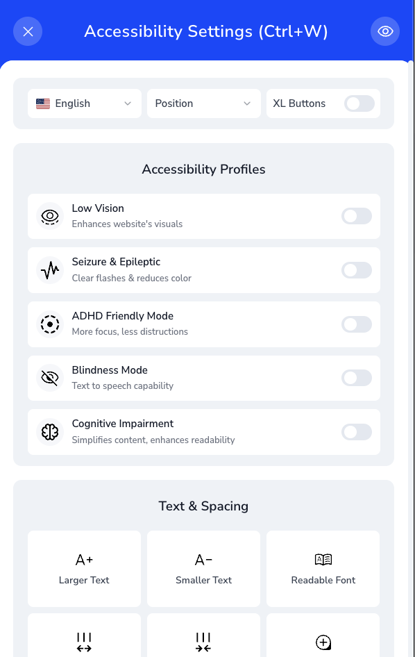 I really like how easy WideAccess is to set up and how smoothly it works right out of the box. The accessibility profiles and customization options feel genuinely useful, not just surface-level features. I also love that it supports so many languages and helps generate accessibility statements automatically. Overall, it’s simple, reliable, and makes my site feel much more accessible for everyone. Review collected by and hosted on G2.com.
