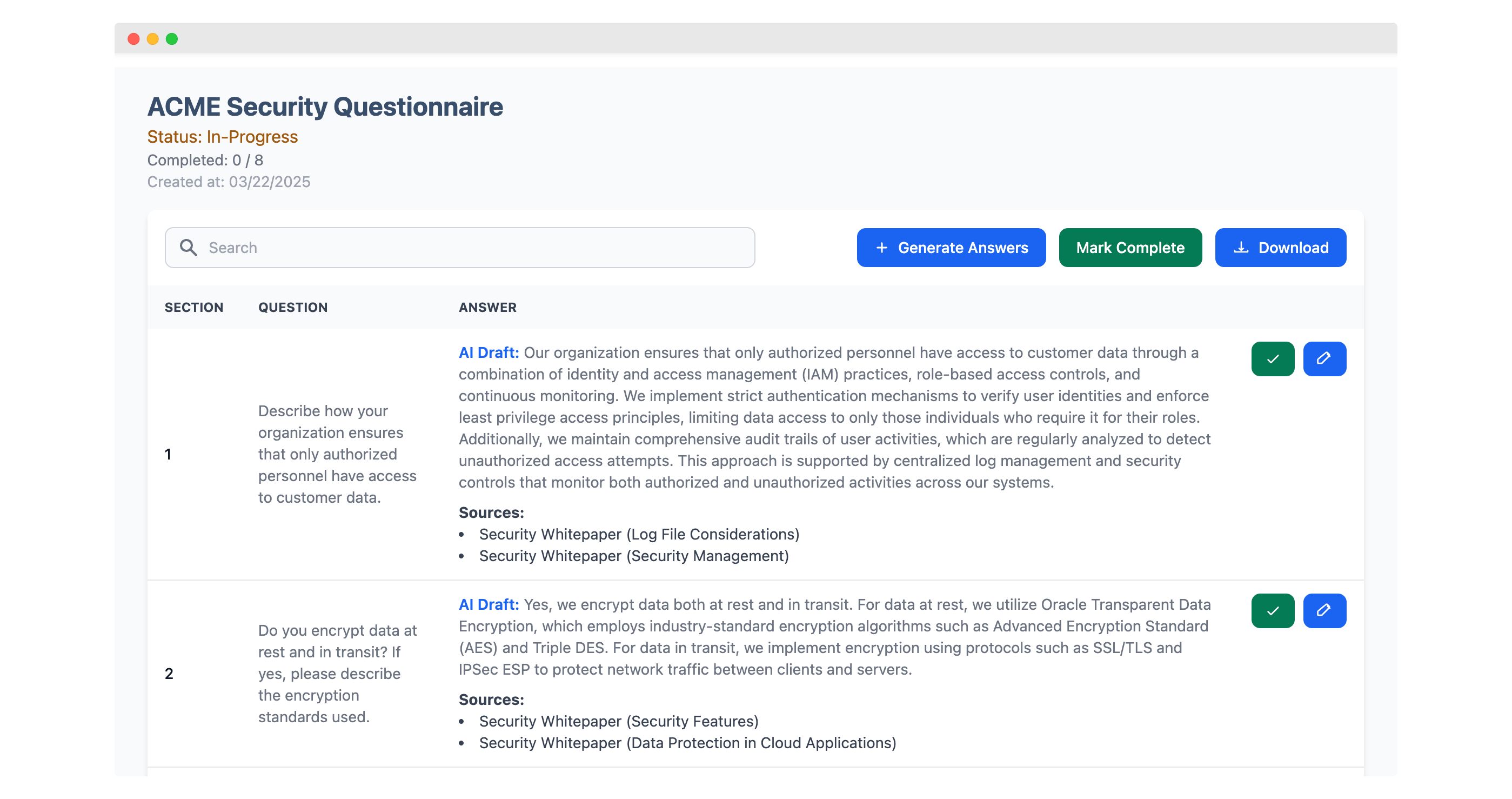WinifyAI Demo - AI-Generated Security Questionnaire Answers – WinifyAI
