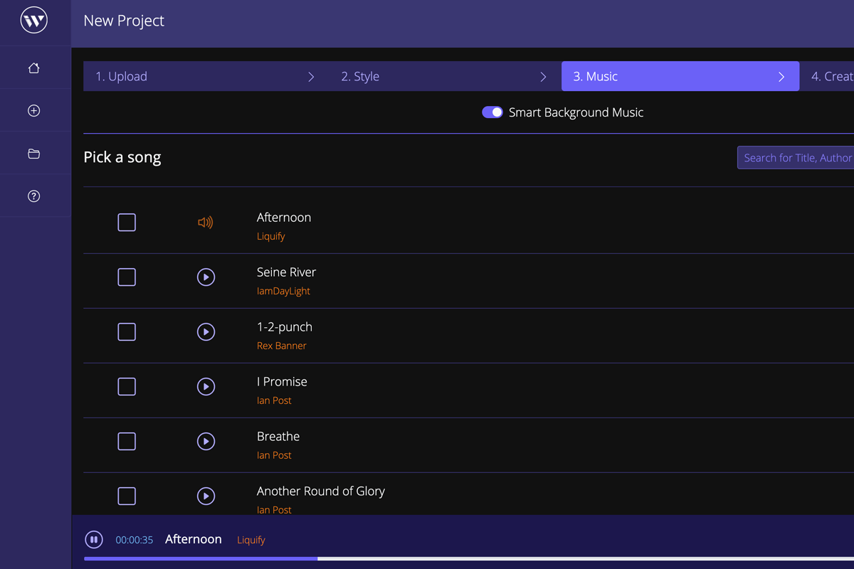 You can pick any soundtrack you like from the royalty-free music library, and Wisecut will automatically tailor the music to your video.