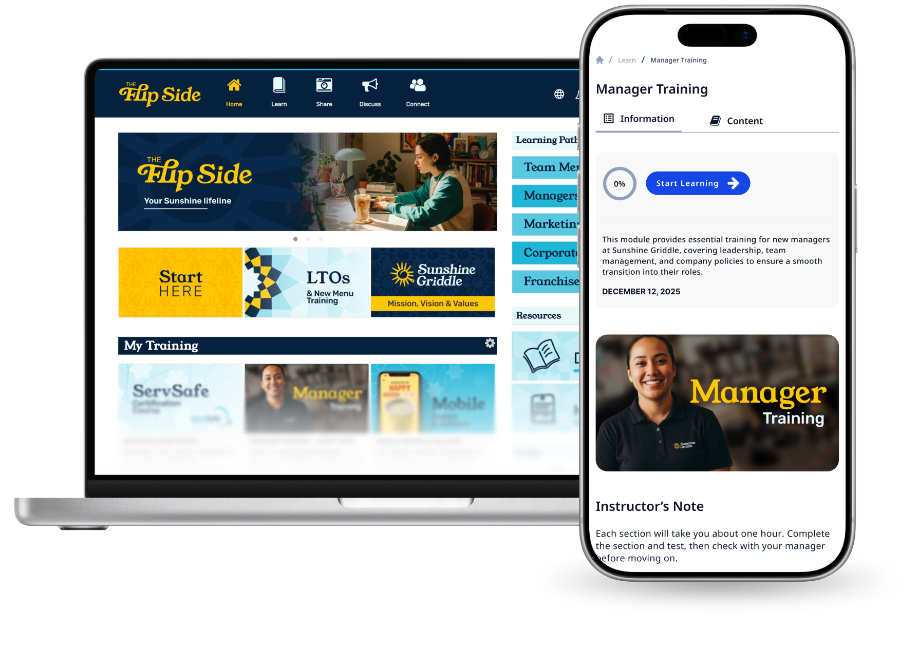• Learn and access content from any device → so your frontline team can stay informed and productive wherever they work