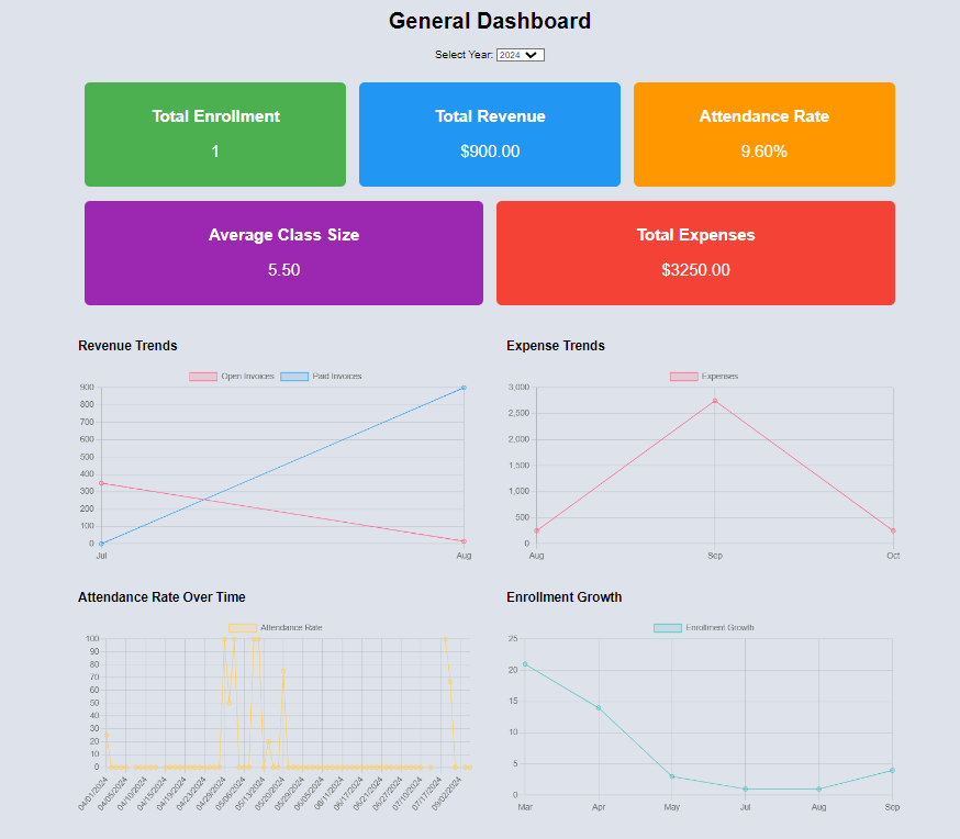 REPORTS: Detailed reports for everything you do is available from the website for student attendance, staff timecard, billing - payments/invoices and entire roster.