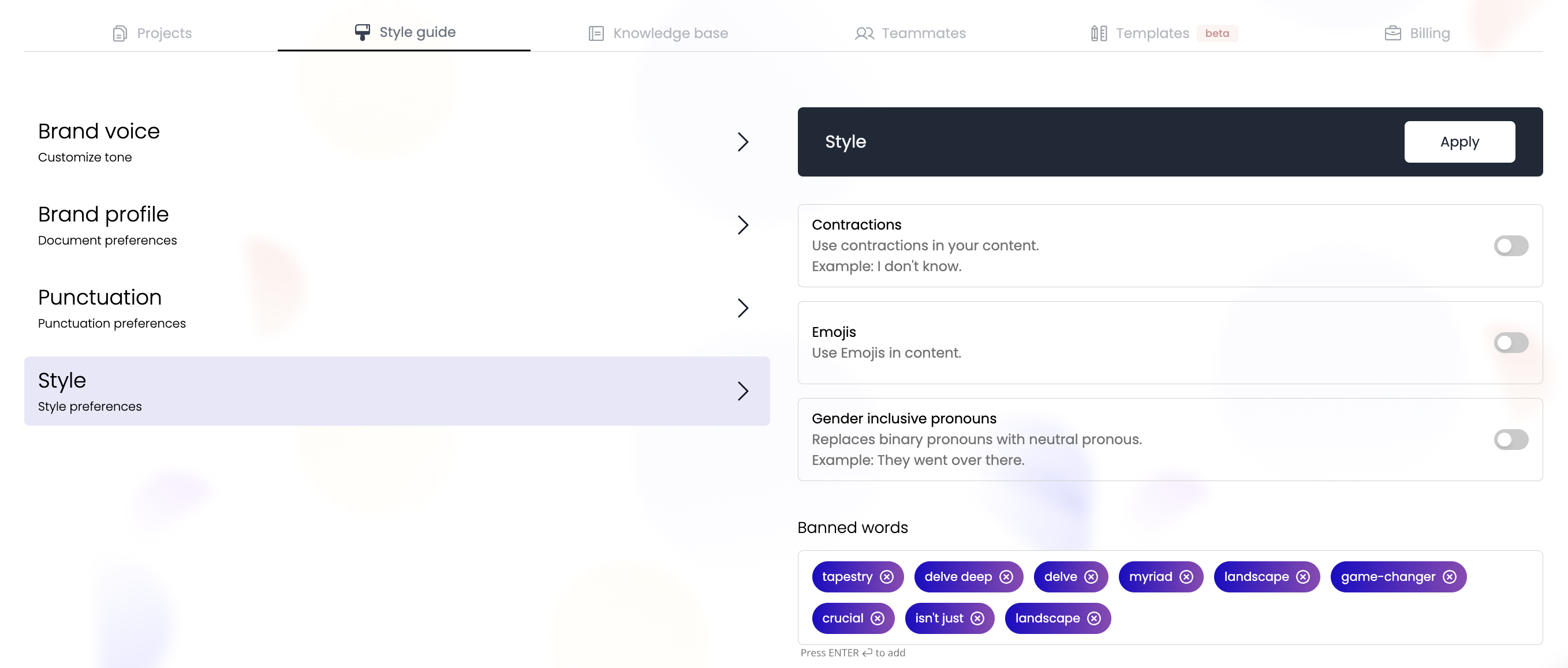 Ensure every piece of content sounds like your brand. Build detailed style guides inside Wordbrew to lock in voice, tone, and strategic messaging—then apply them across all your projects.