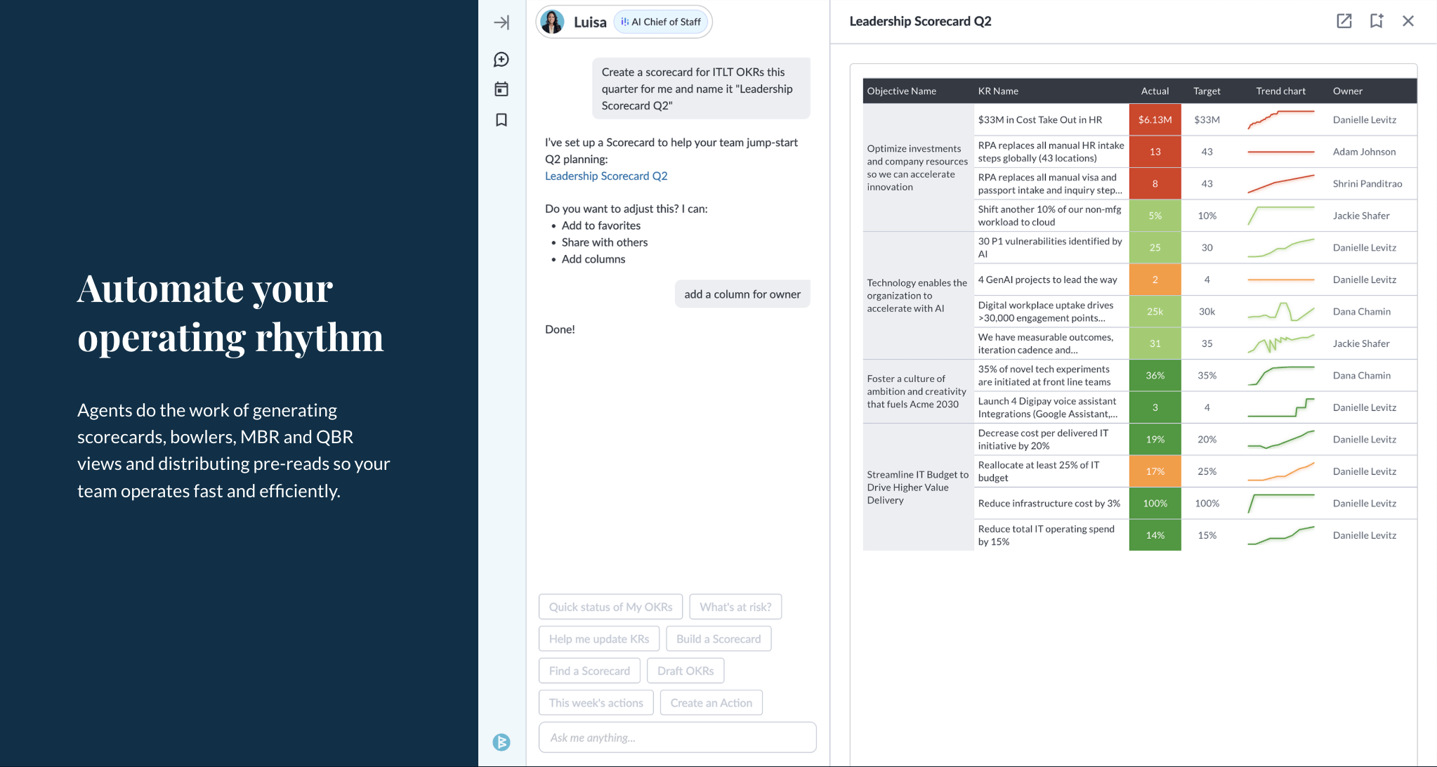 • Automate operating cadence reporting and MBRs