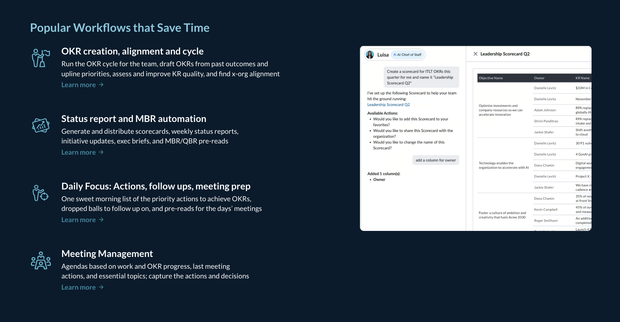 Business leaders use WorkBoardAI to: