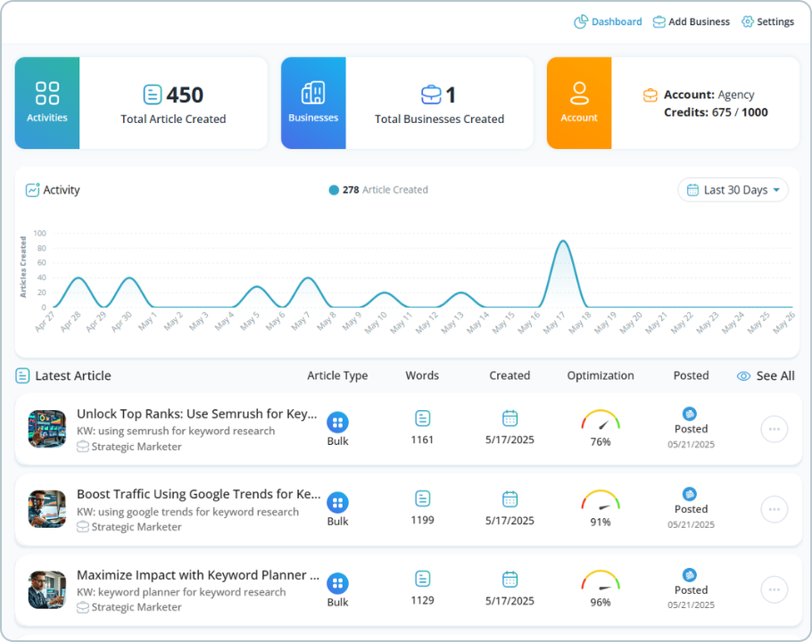 Online Visibility and Content Marketing SaaS Platform