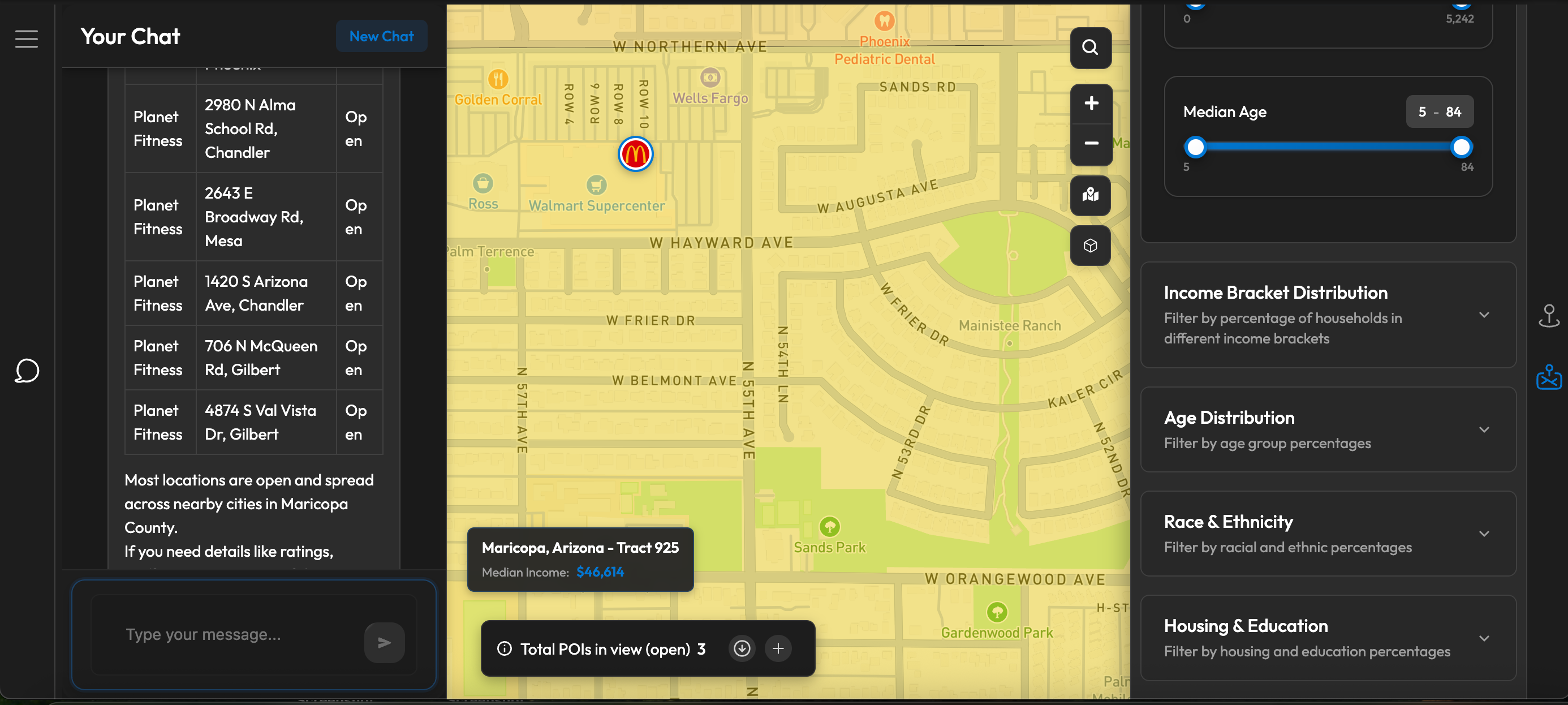 The idea of using AI to analyze the collection of data based on points of interest and demographics is pointing to the right direction. It tends to analyze data on specific places like restaurants, logistics, warehouses, and shops to be used in map like form to help users find and learn about information of different locations. Examples include finding restaurants in Japan. It also tends to provide analysis and data by industry, by use case, and by role. Review collected by and hosted on G2.com.