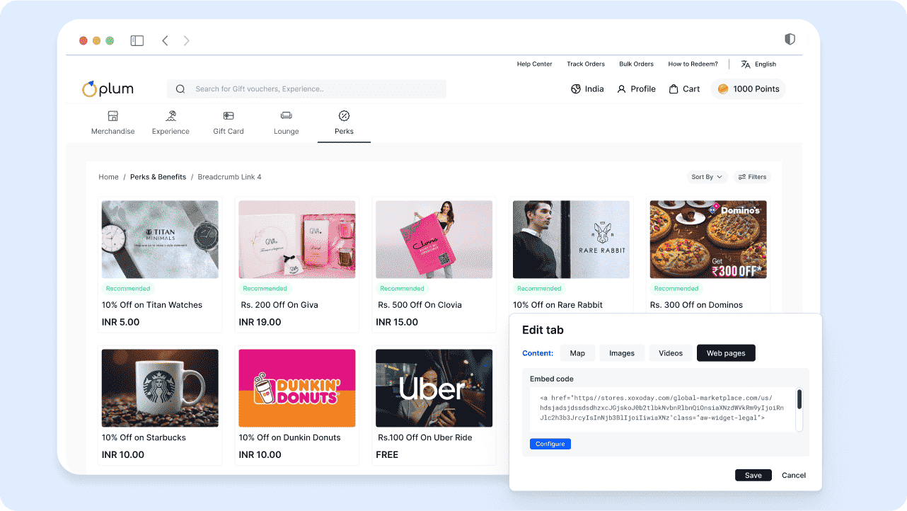 2. Plum : A global rewards marketplace with 10M+ options across 30+ categories including gift cards, experiences, travel, merchandise, digital subscriptions, wellness, and charity donations in 175+ countries