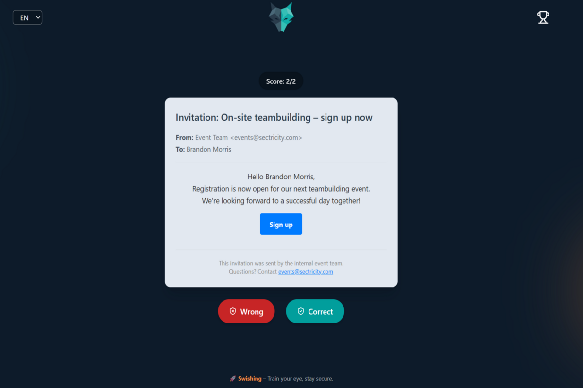 SoSafe’s awareness platform uses simulated phishing attacks and interactive e-learnings to sensitize, train and test employees with regards to IT security topics.