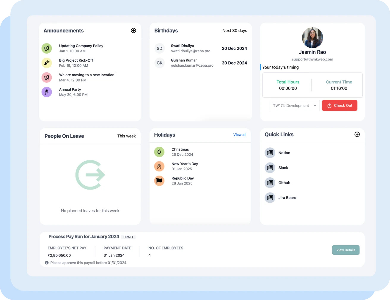 A complete HRMS Solution that saves HR efforts by automating tedious tasks and managing entire employee life-cycle.