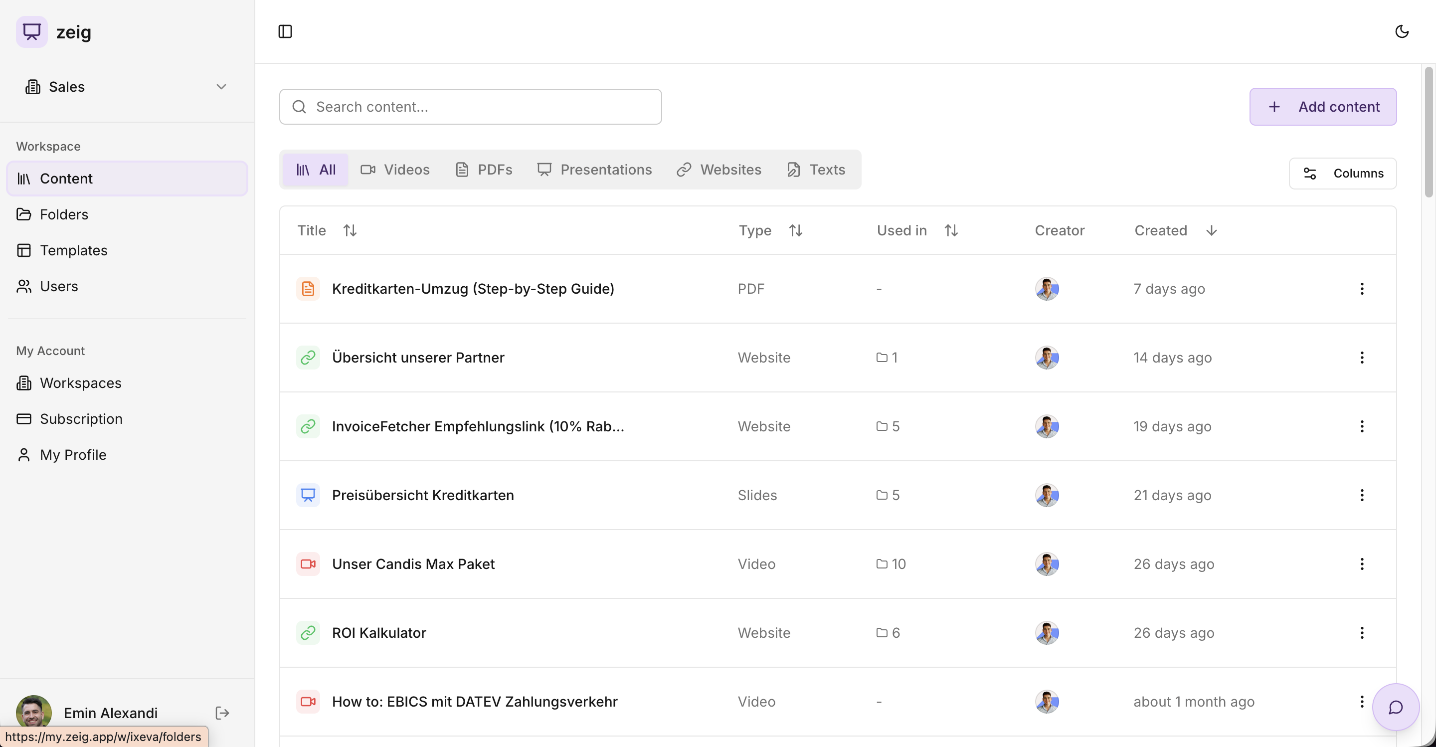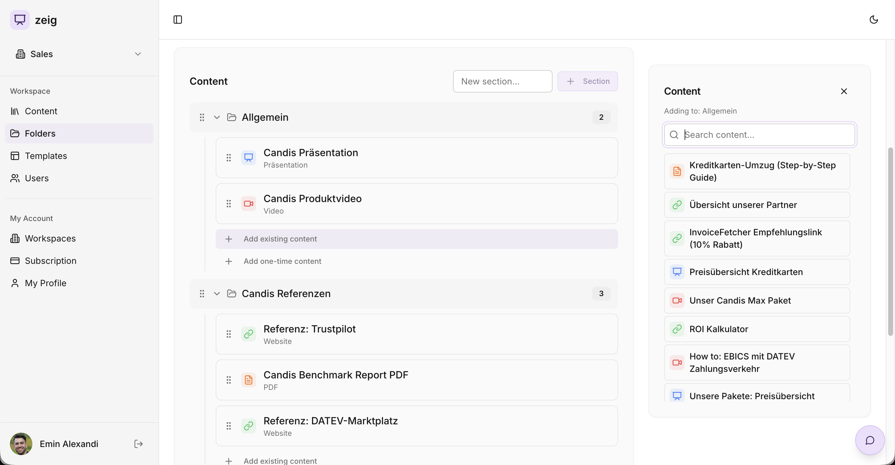 We switched from more expensive tools to Zeig and couldn't be happier. The setup was fast and easy; each team can use and manage its own workspace.