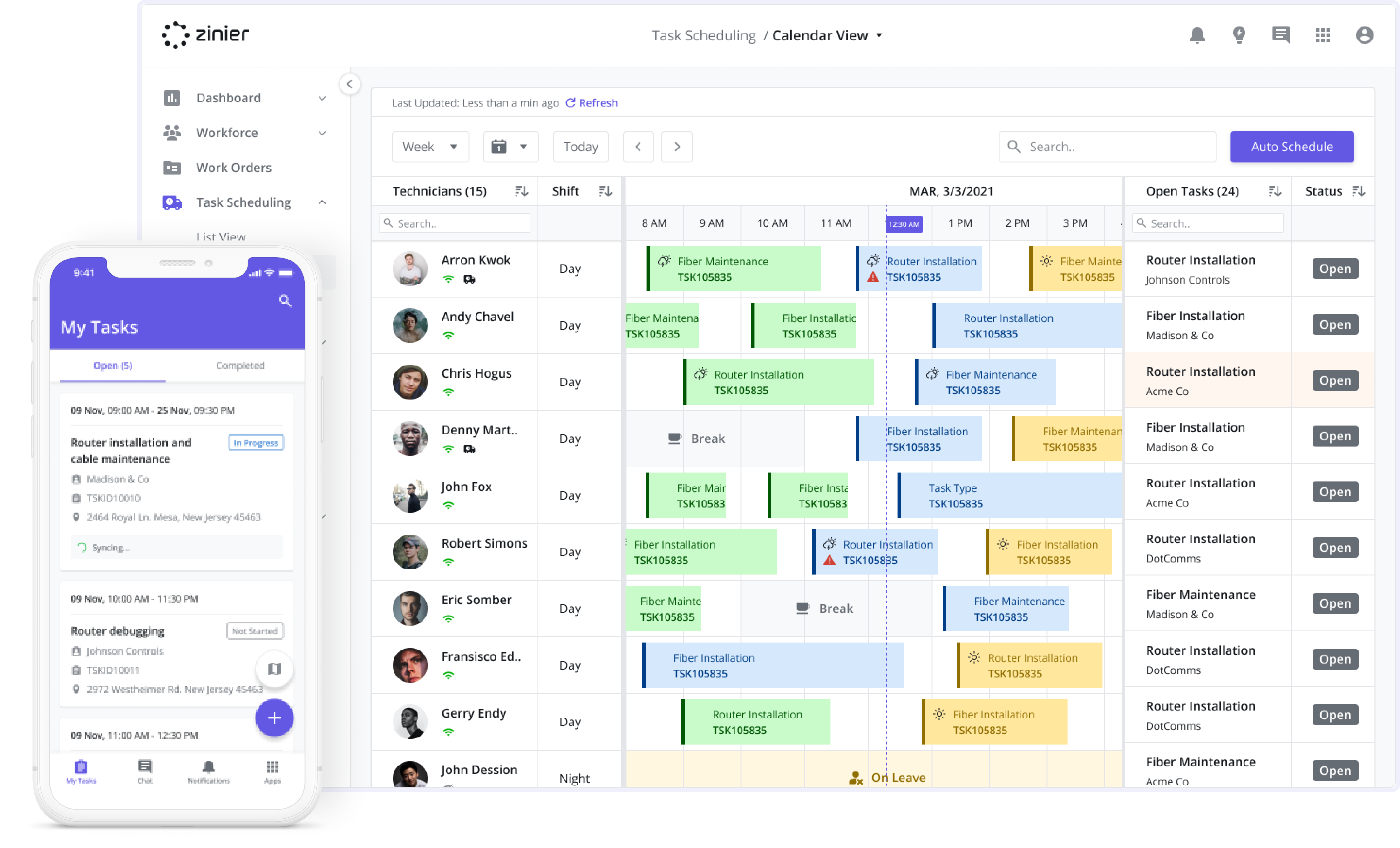 Zinier is a cloud-based Field Services Automation platform transforming the way critical assets and workforce are managed in the field. With a state-of-the-art platform, we help organizations to improve field operations, manage frontline workforce and maintain critical assets, thus helping to create a connected, sustainable and safe world.