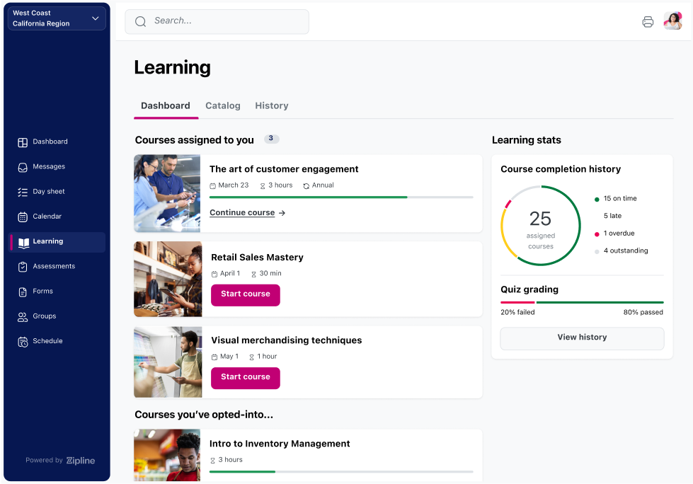 Key features of Zipline include its robust task management system, which allows managers to assign and track tasks in real-time, ensuring accountability and clarity among team members. The platform also offers a centralized communication hub, enabling seamless information sharing and collaboration among staff. Additionally, Zipline provides access to learning resources that support employee development, helping teams stay knowledgeable about products and brand initiatives. This combination of features not only enhances operational performance but also contributes to higher employee satisfaction and retention.