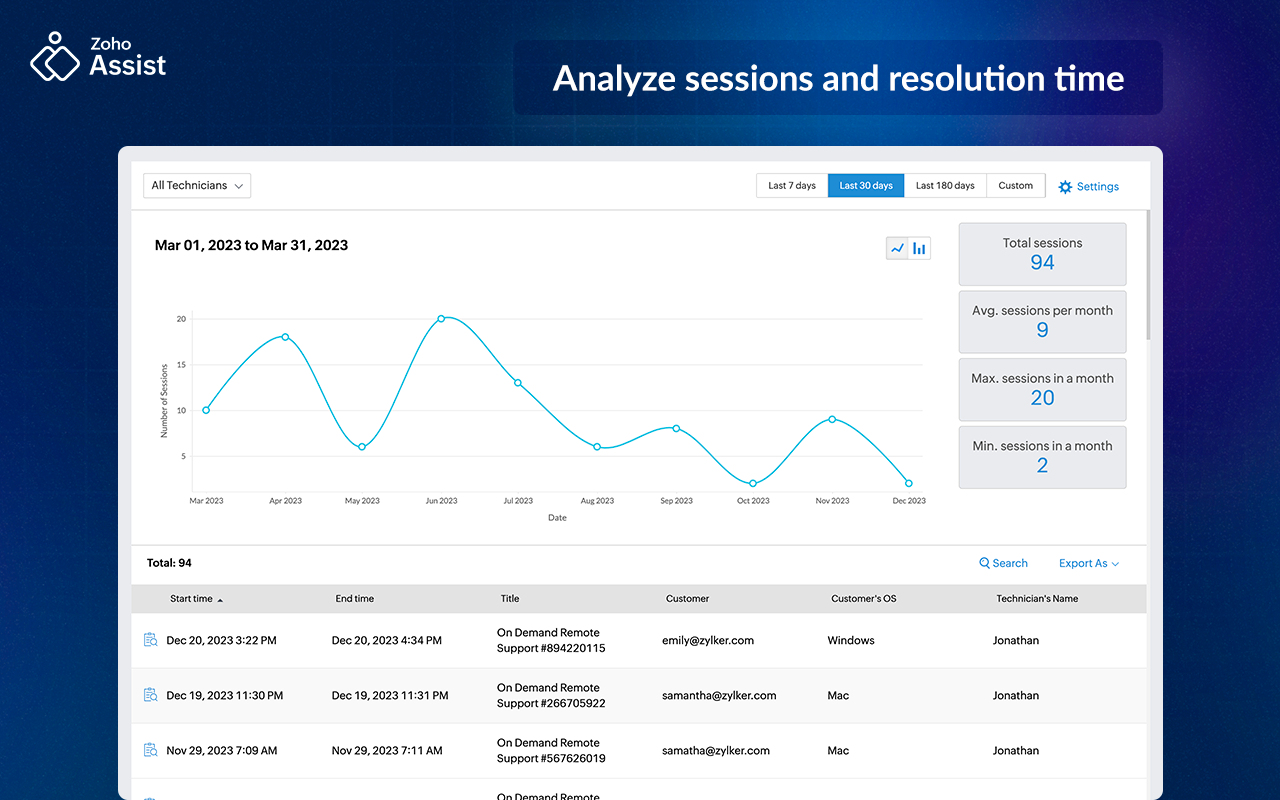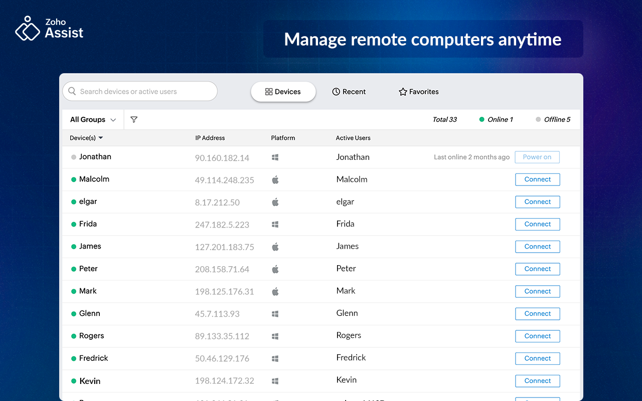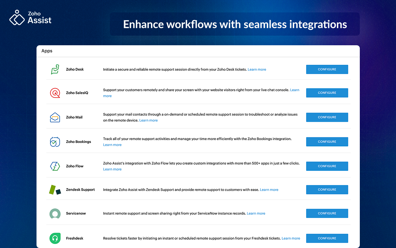 Zoho Assist does exactly what I need it to do. I mainly use the Unattended Access service, and the interface couldn’t be easier to use. I also like that I can add notes in the computer name section, which helps me remember which computers belong to whom. Review collected by and hosted on G2.com.