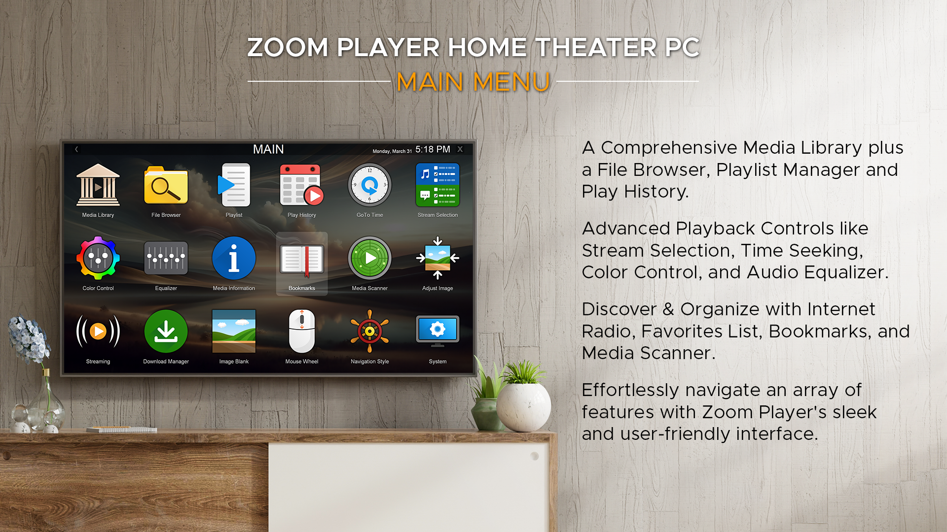 Zoom Player, the most Flexible & Sophisticated Media Player for Windows PCs / Tablets.