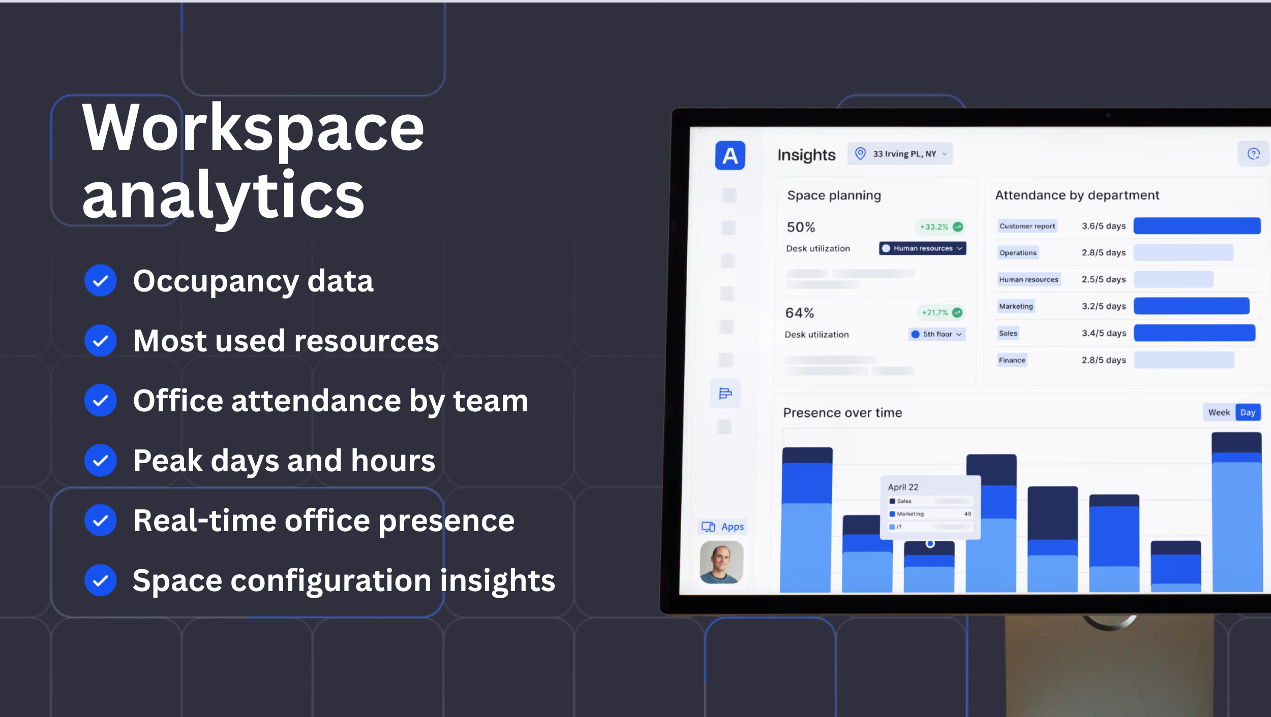 Uma interface moderna, recursos administrativos poderosos e uma experiência de usuário incomparável diferenciam Archie de outras soluções. Tanto pequenas e médias empresas quanto grandes empresas adoram os recursos extensivos do Archie, que incluem plantas visuais, registros de visitantes, rastreamento de check-in e check-out, agendamento de salas de reunião, atribuição de assentos, gestão de múltiplas localizações, automações inteligentes, notificações em tempo real, um aplicativo móvel de marca branca, SSO e SCIM, uma API aberta, e muito mais.