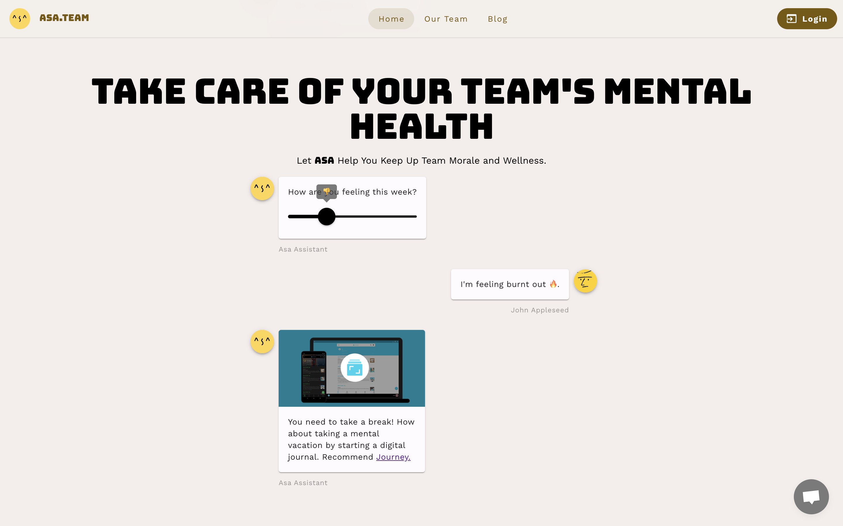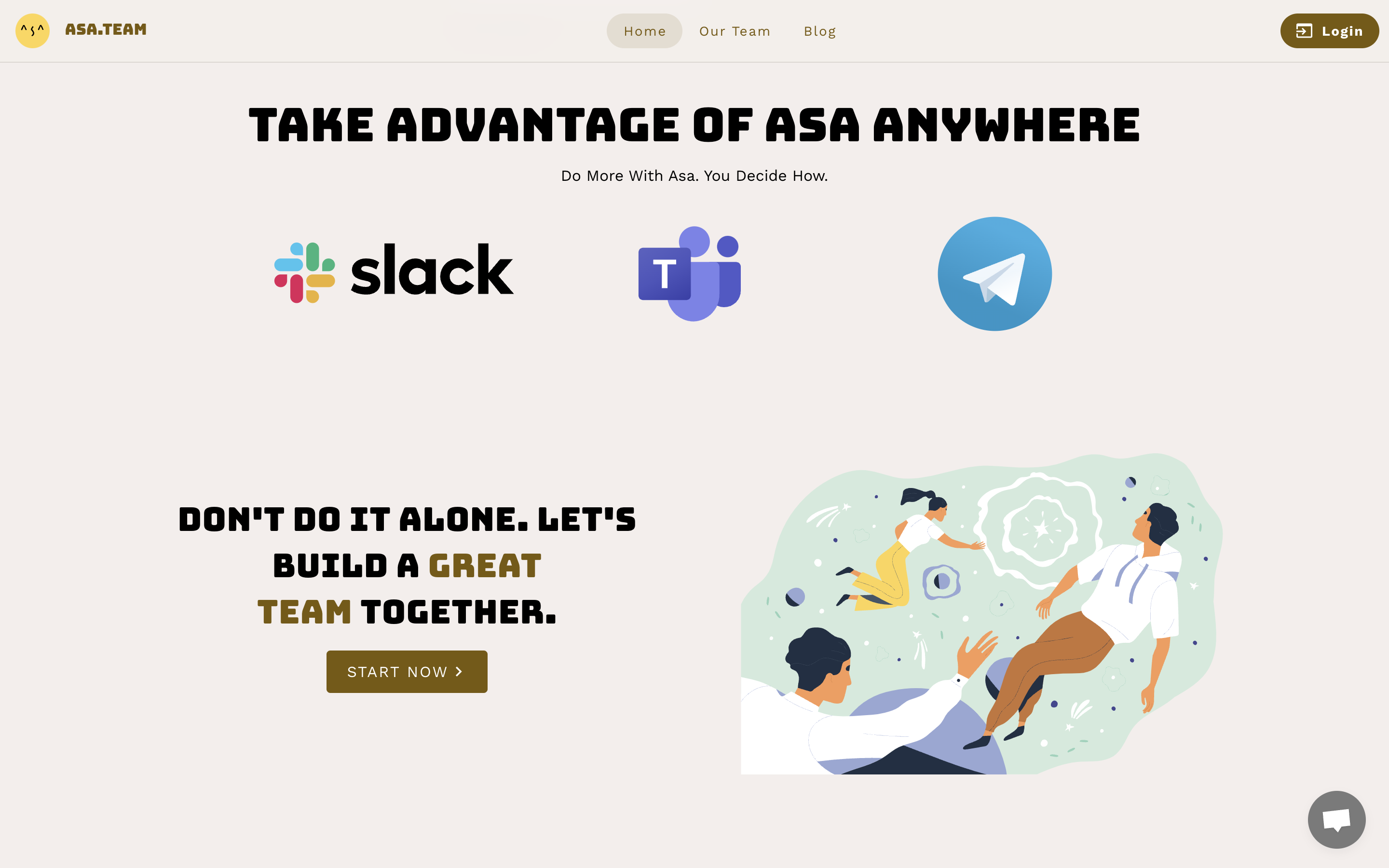 ASA.team tem sido um divisor de águas para manter nossa equipe no caminho certo, tanto com o trabalho quanto com o bem-estar. O registro de entrada/saída é tão simples, não há mais planilhas complicadas. Além disso, ver o rastreador de humor me dá uma visão valiosa sobre os níveis de estresse da minha equipe, permitindo-me oferecer suporte quando necessário. Análise coletada por e hospedada no G2.com.