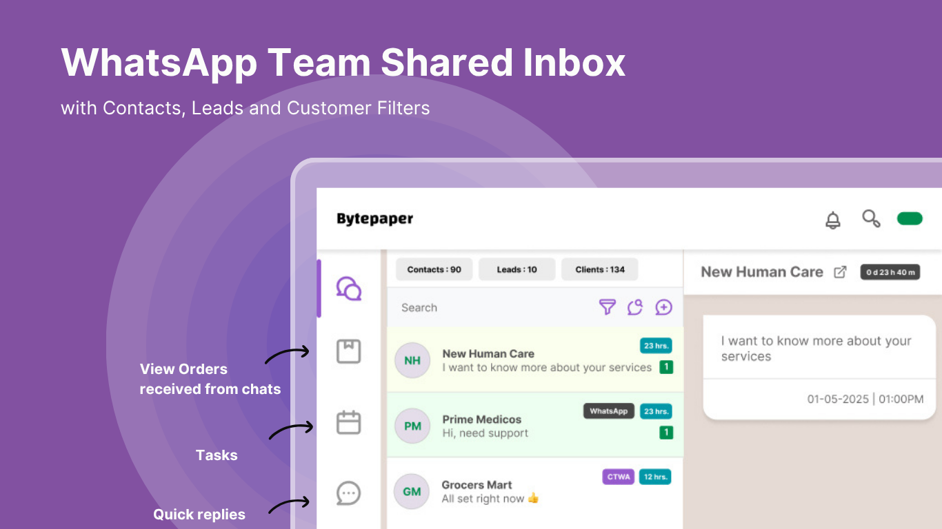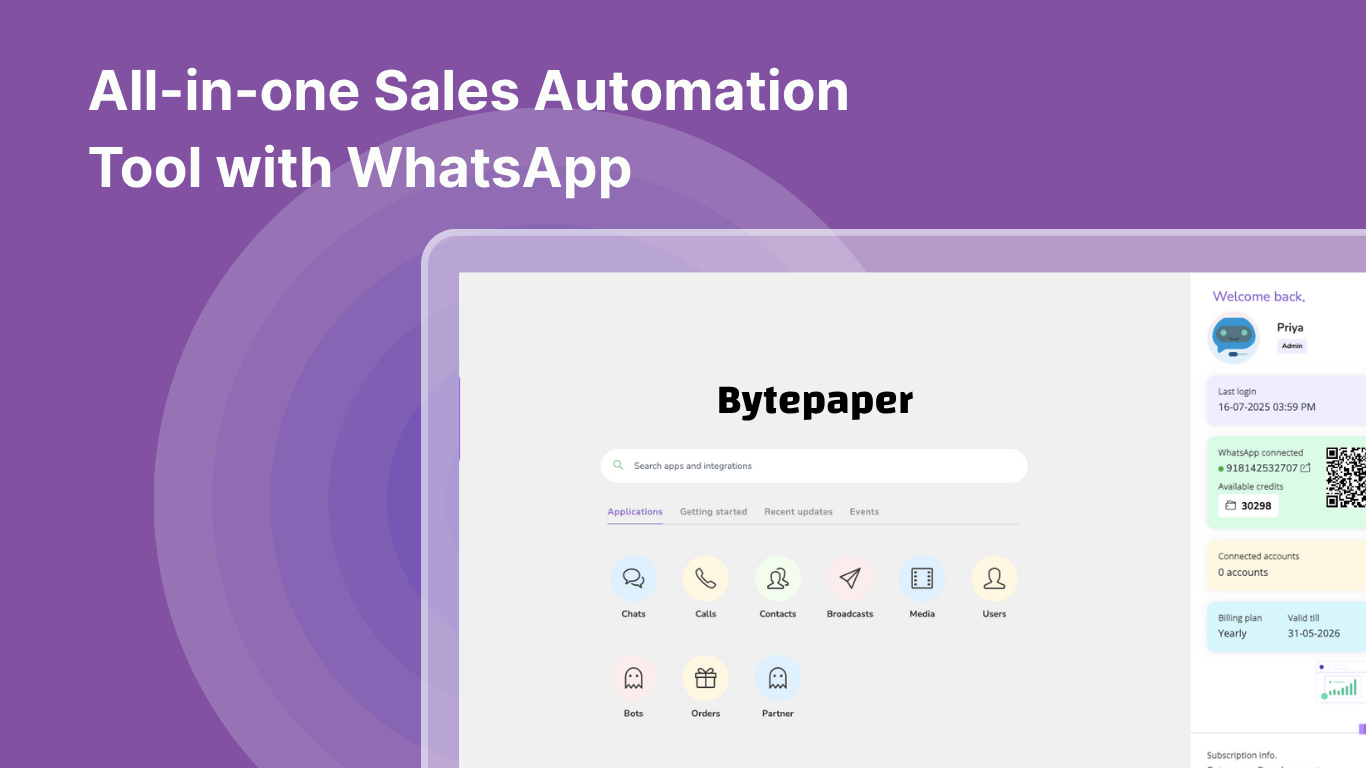 Bytepaper é uma plataforma de engajamento e CRM de Vendas multi-aplicativo, alimentada pelo WhatsApp, projetada para empresas B2B, D2C e B2C em crescimento.