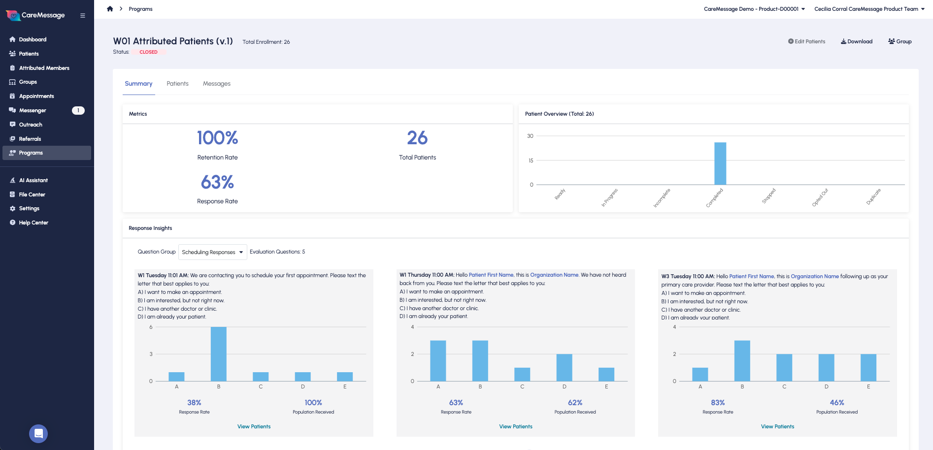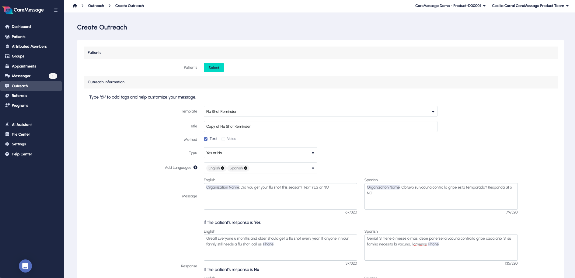 - Suporte, engajamento contínuo da CareMessage. Não apenas com recursos do produto, mas eles realmente querem entender nossas necessidades de negócios e os problemas que estamos tentando resolver com mensagens. Satisfeitos com as melhorias do produto que vimos no ano passado, que foram recursos específicos que solicitamos.