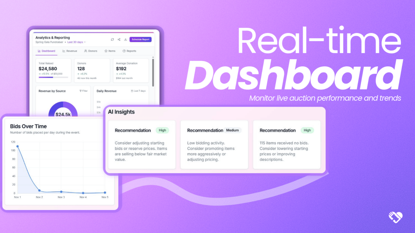 CharityAuctions é projetada para tornar a realização de um evento de arrecadação de fundos bem-sucedido mais eficiente, transparente e orientado por dados. Ao combinar ferramentas de leilão, gestão de doadores e relatórios em um único sistema, ajuda as organizações a focarem menos na logística e mais em construir relações mais fortes com os doadores e arrecadar mais fundos para sua causa.