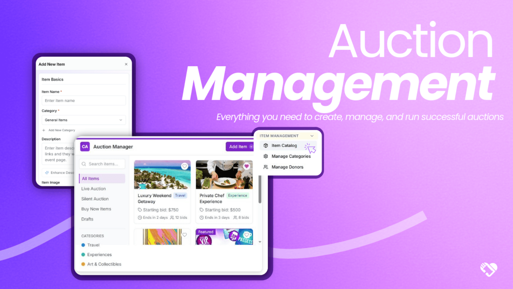 Os casos de uso comuns incluem arrecadações de fundos escolares, galas de organizações sem fins lucrativos, torneios de golfe beneficentes, eventos beneficentes de igrejas e eventos comunitários. CharityAuctions ajuda as organizações a aumentar a participação, reduzir a carga de trabalho administrativa e melhorar a retenção de doadores por meio de automação digital e fluxos de trabalho simplificados.