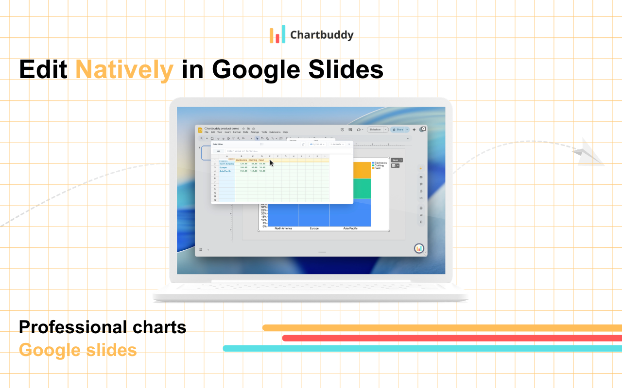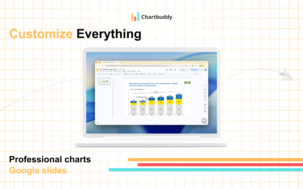 Chartbuddy é muito intuitivo e semelhante às ferramentas de construção de gráficos que eu tinha acesso como consultor na EY-Parthenon. Quando deixei a consultoria, foi enlouquecedor tentar criar gráficos no Google Slides sem a funcionalidade avançada à qual eu tinha me acostumado para exibir dados. A equipe também é muito receptiva ao feedback. Análise coletada por e hospedada no G2.com.