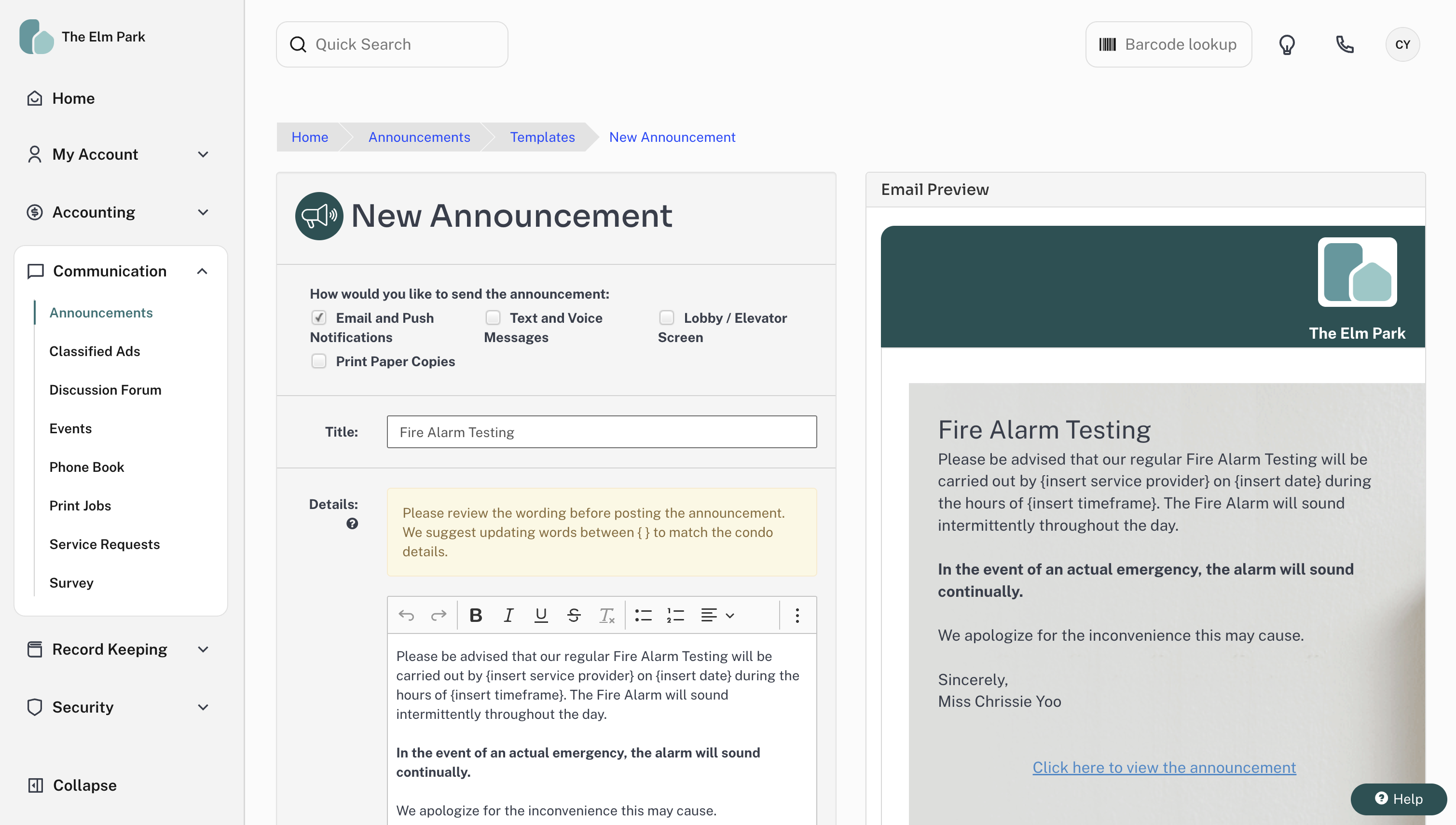 Acho que o aspecto mais útil do Condo Control é o suporte que ele oferece para gerenciar registros e lidar com as atividades diárias tanto da administração quanto da equipe em um ambiente de condomínio. Como uso o aplicativo e o site todos os dias, continuo descobrindo novos recursos, tornando-o uma experiência de aprendizado contínua. O sistema de reserva de comodidades, juntamente com a flexibilidade para revisar reservas ou processar reembolsos autorizados para cancelamentos tardios, simplifica as coisas para os residentes e também está conectado ao nosso departamento de contabilidade, o que torna o acompanhamento de qualquer atividade direto. Erros com registros podem acontecer, mas poder recuperá-los do arquivo da unidade é um verdadeiro alívio. Gerar pacotes para notificar os residentes quando suas compras na loja estão prontas para retirada também economizou tempo tanto para a administração quanto para o Concierge. Eu poderia continuar, mas, no geral, todos os recursos que usei até agora tornaram meu dia de trabalho mais fácil. Análise coletada por e hospedada no G2.com.