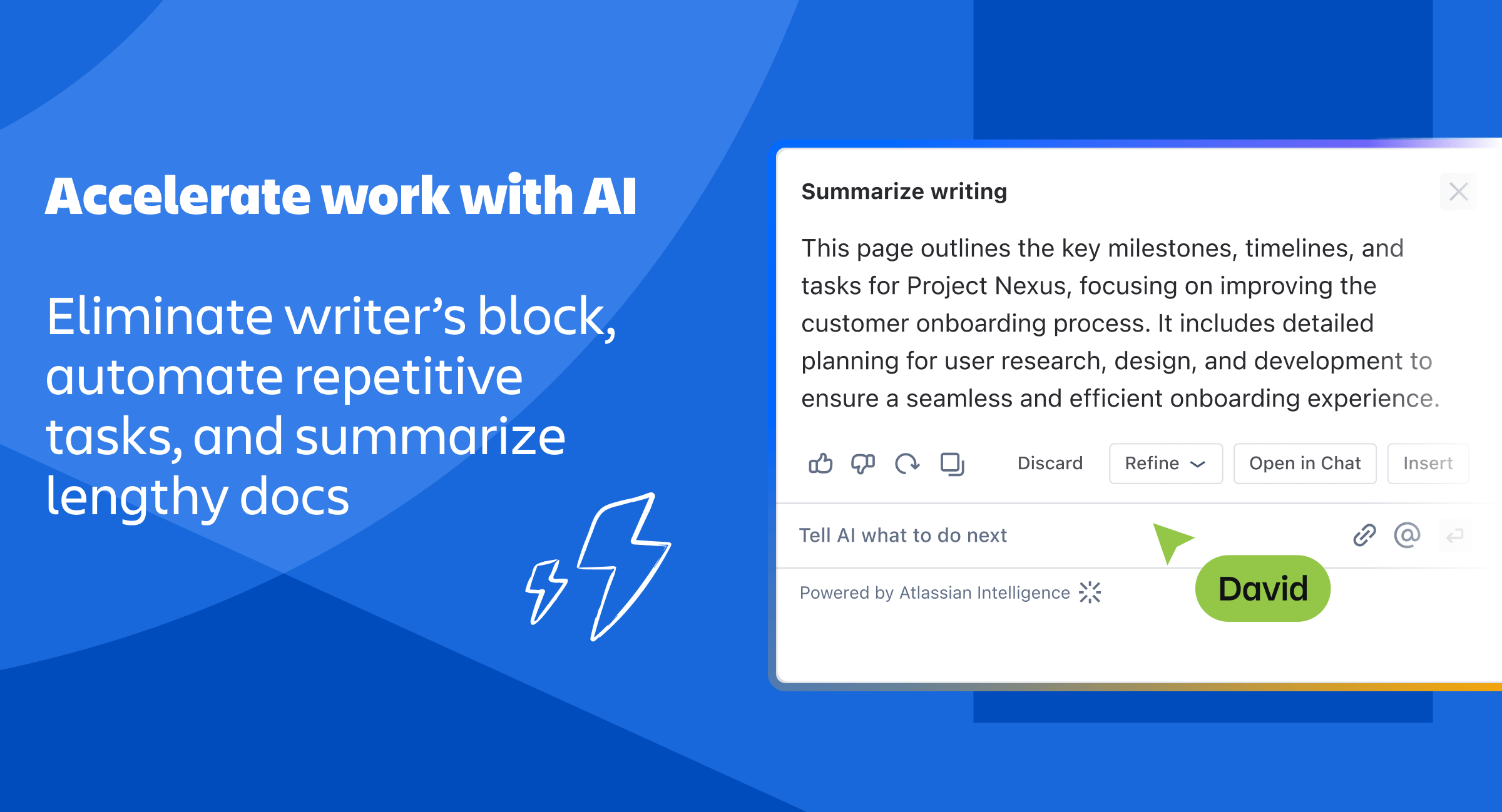 O que eu mais gosto no Confluence é como ele reúne todo o nosso conhecimento de projeto em um espaço organizado e colaborativo.