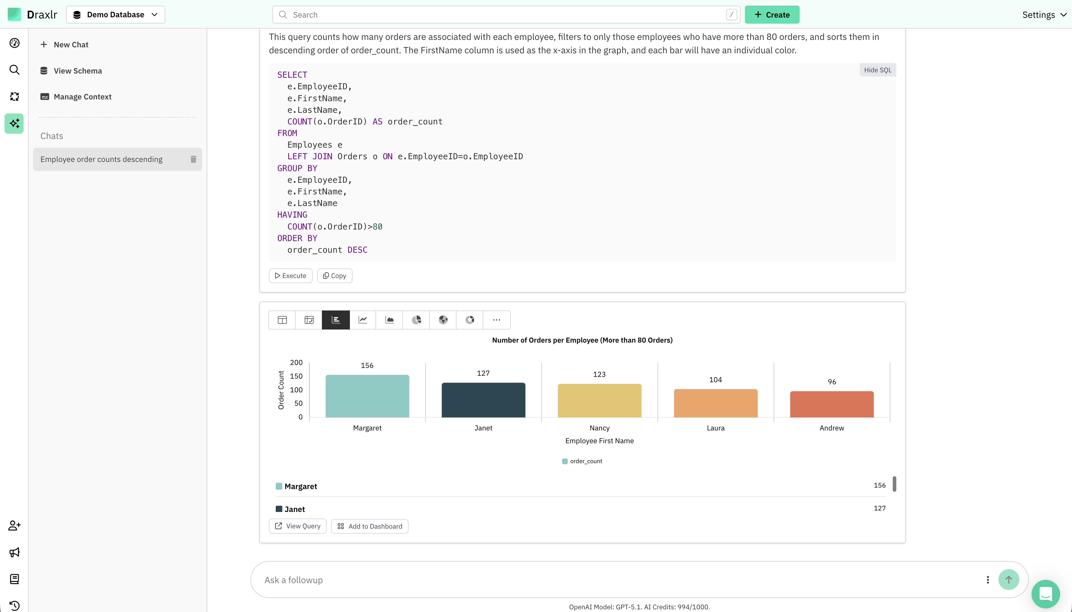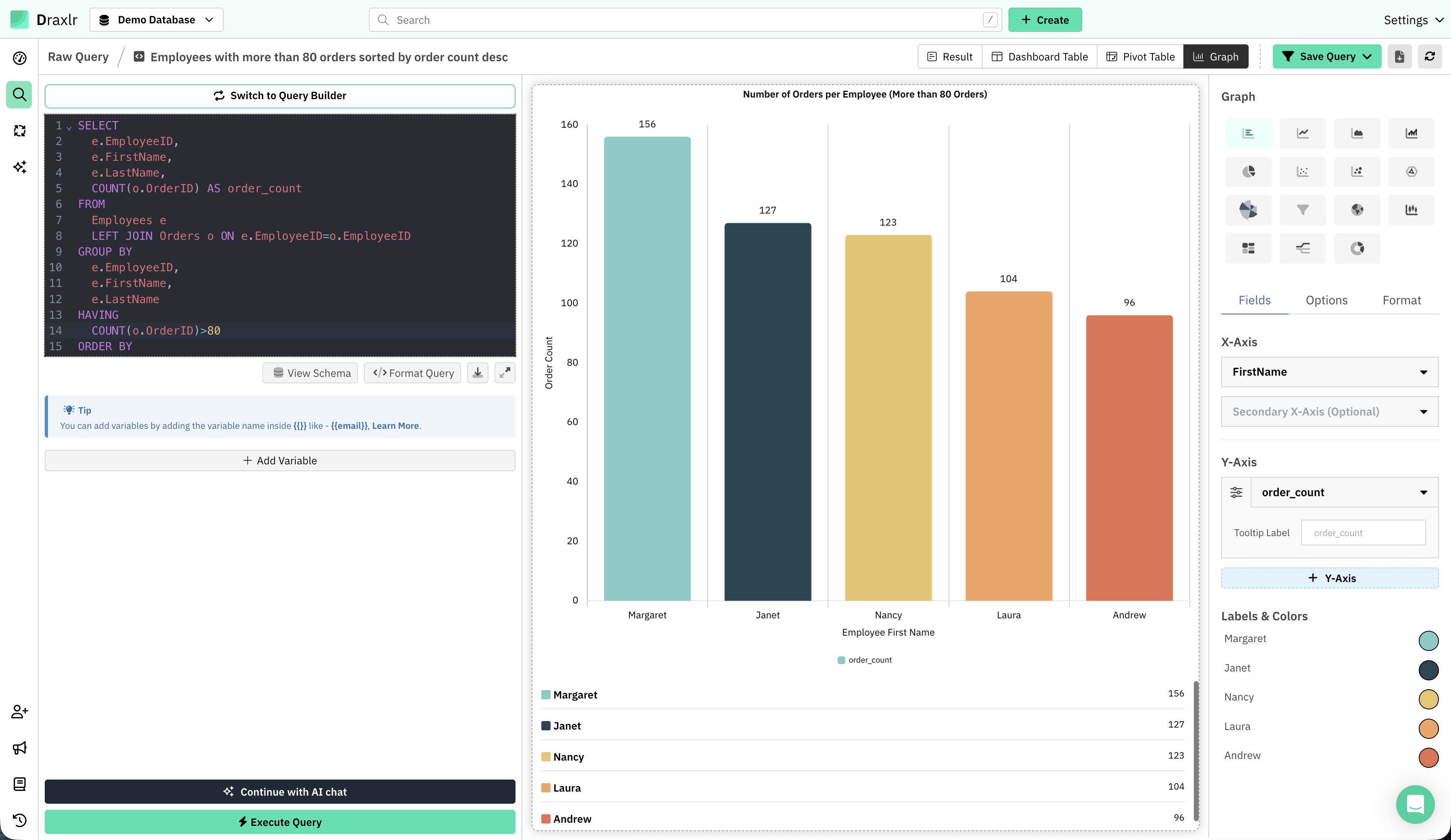 O construtor de consultas de IA e como é simples transformar resultados SQL em gráficos e painéis. Análise coletada por e hospedada no G2.com.