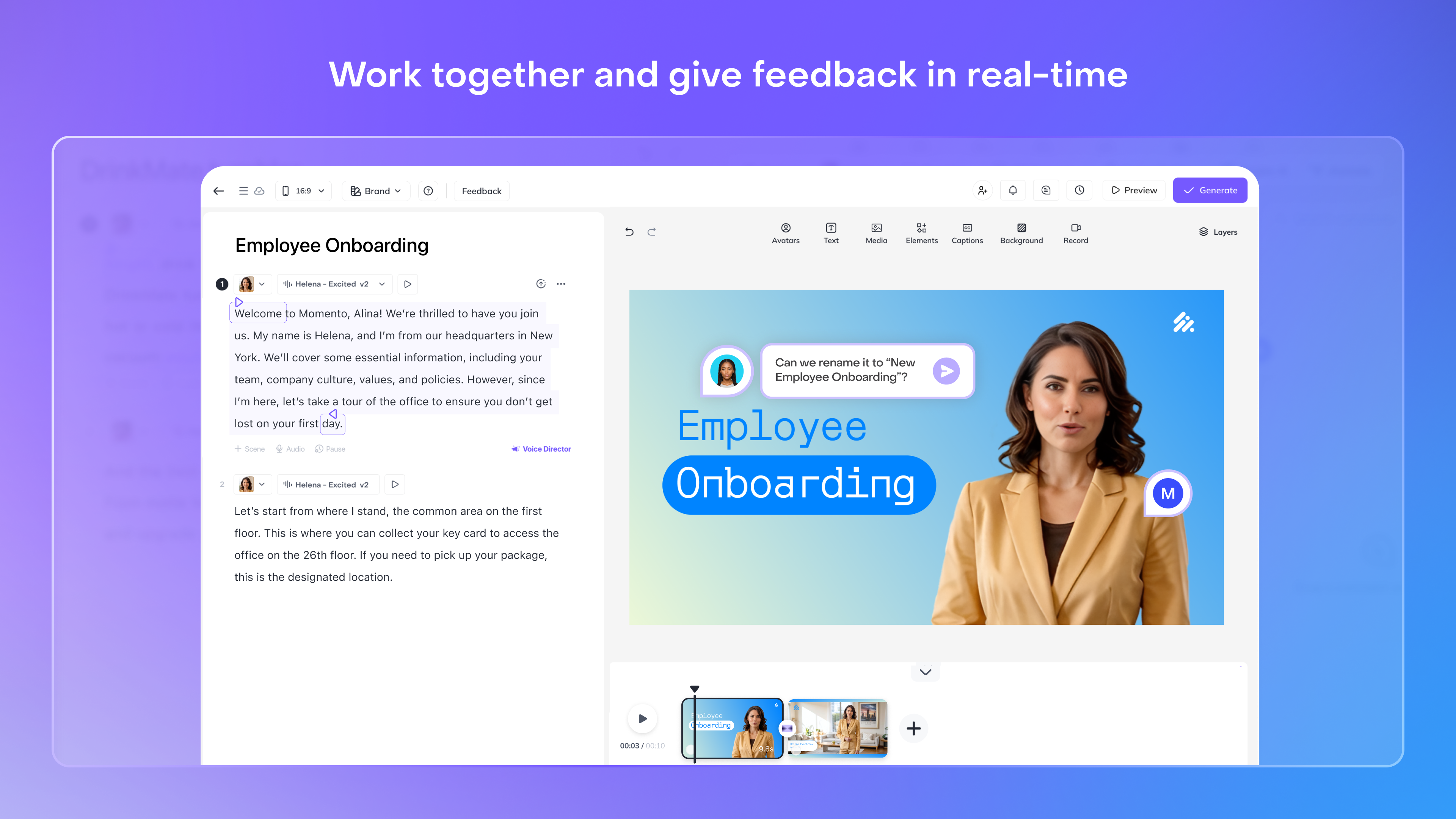 Currently, my main frustration is the lack of transparency in how Generative Credits are managed. It's often unclear how many credits are used for each operation, and there is no way to view detailed consumption history. Another limitation is that only two avatars can appear together in a single scene, which means that multi-person conversations have to be created by combining separate single-person scenes. When generating appearances, the same character can look very different depending on the angle or clothing, so I frequently have to adjust prompts to achieve consistency. I hope these issues, though relatively minor, will be addressed in future updates. Análise coletada por e hospedada no G2.com.
